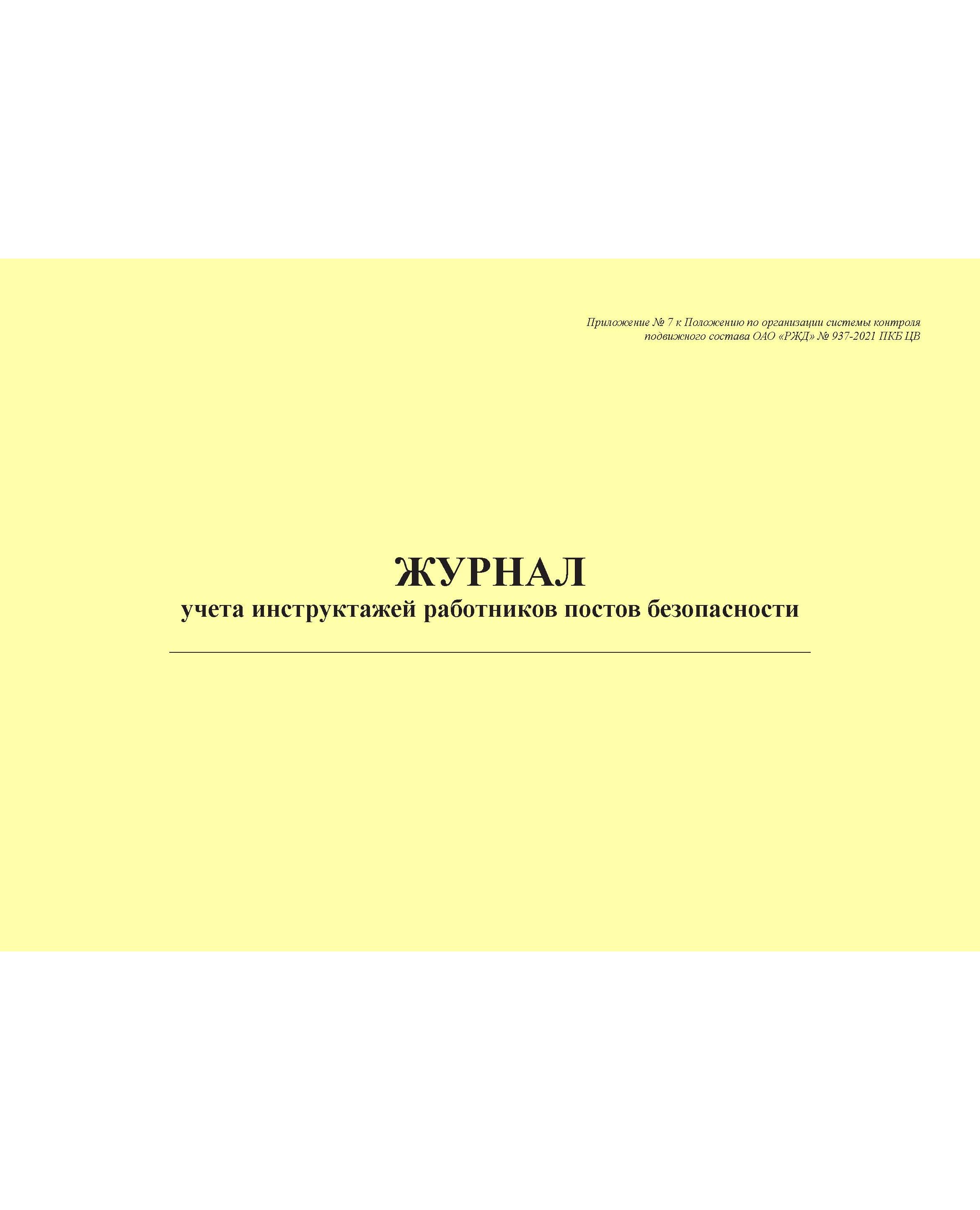 Журнал учета инструктажей работников постов безопасности. Приложение № 7 к Положению по организации системы контроля подвижного состава ОАО "РЖД" № 937-2021 ПКБ ЦВ в редакции Распоряжения ОАО "РЖД" от 29.10.2024 № 2653/р (альбомный, прошитый, 100 страниц)