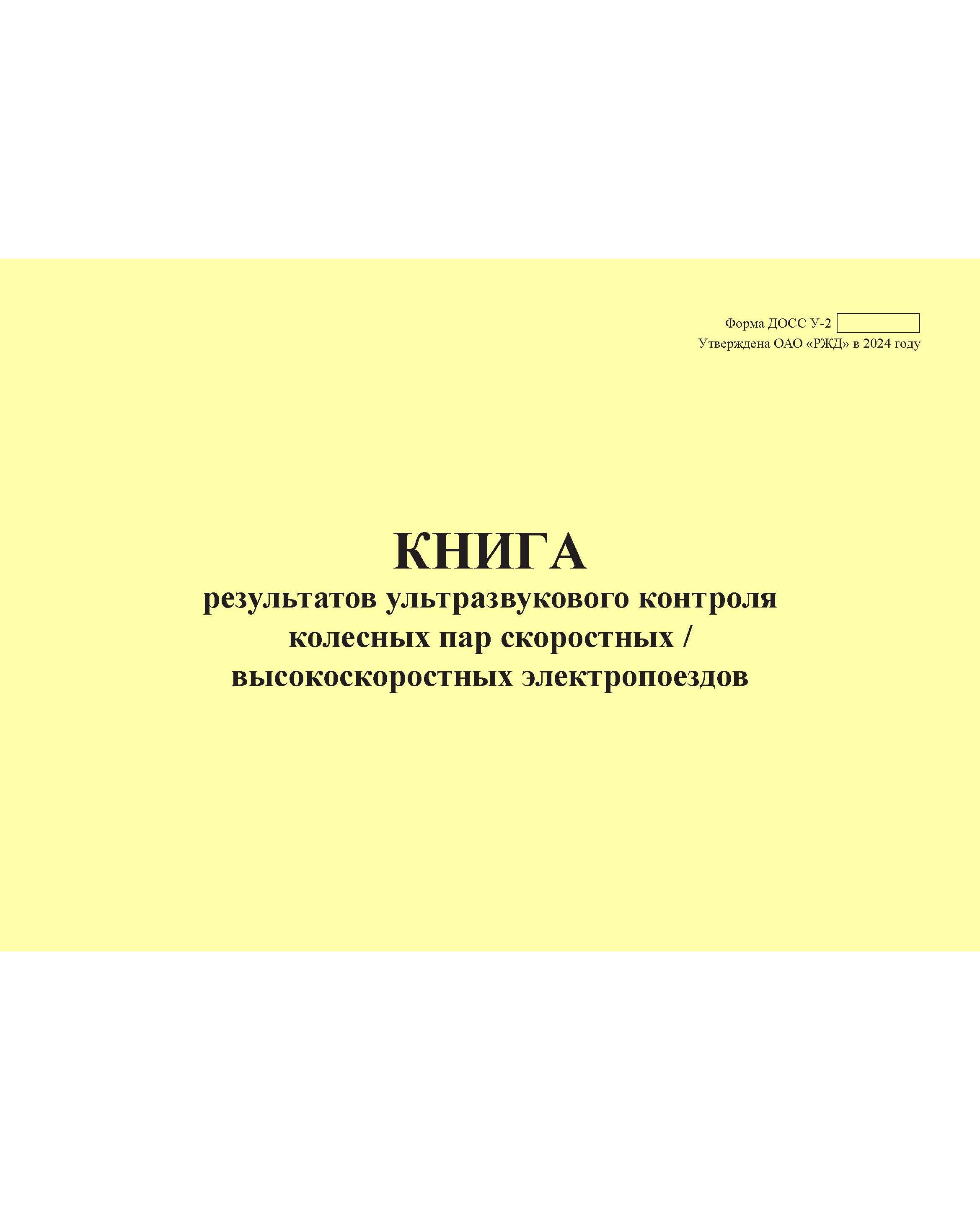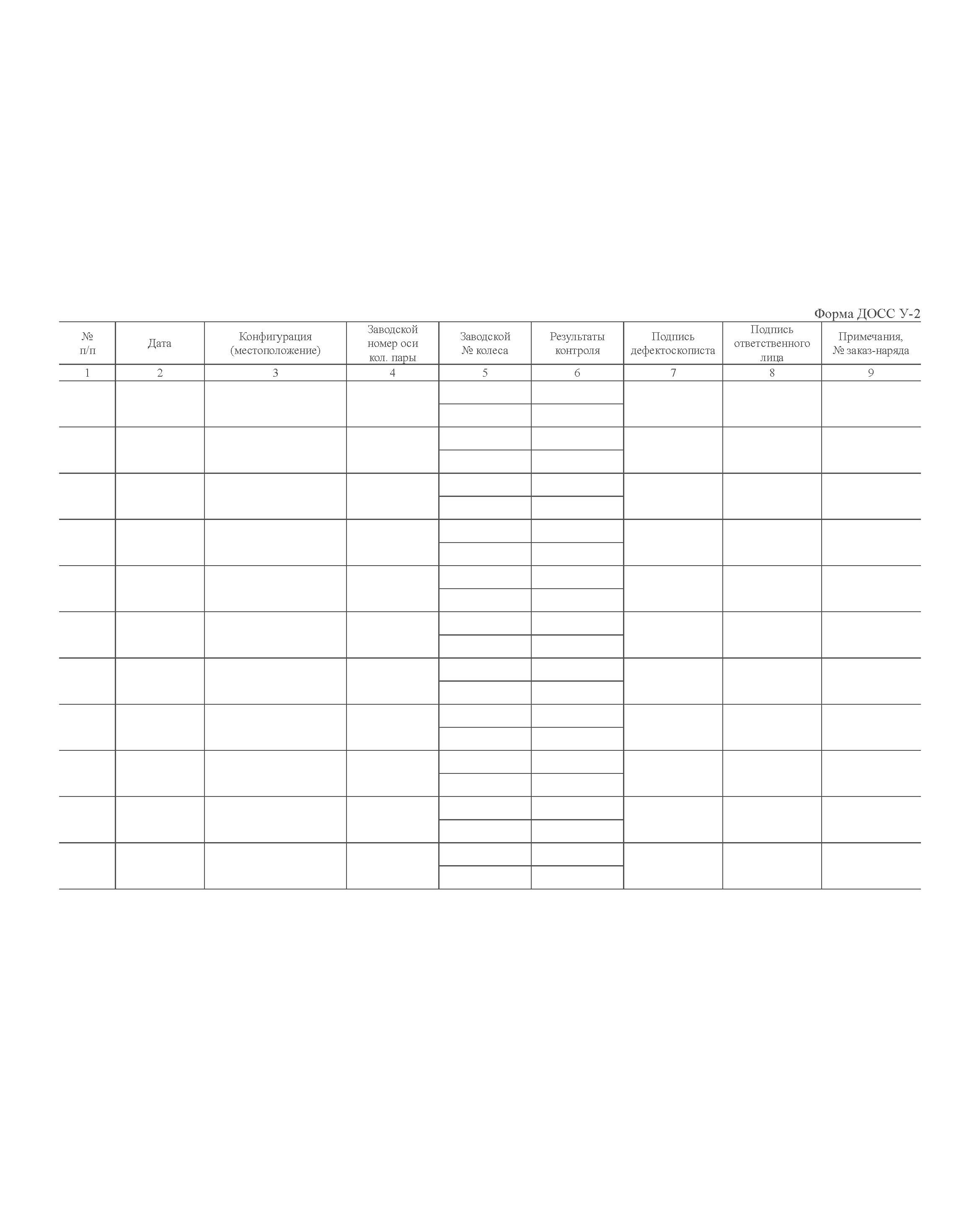 Книга формы ДОСС У-2 предназначена для записи результатов ультразвукового контроля колесных пар. Заполняется дефектоскопистом, выполняющим данный контроль.