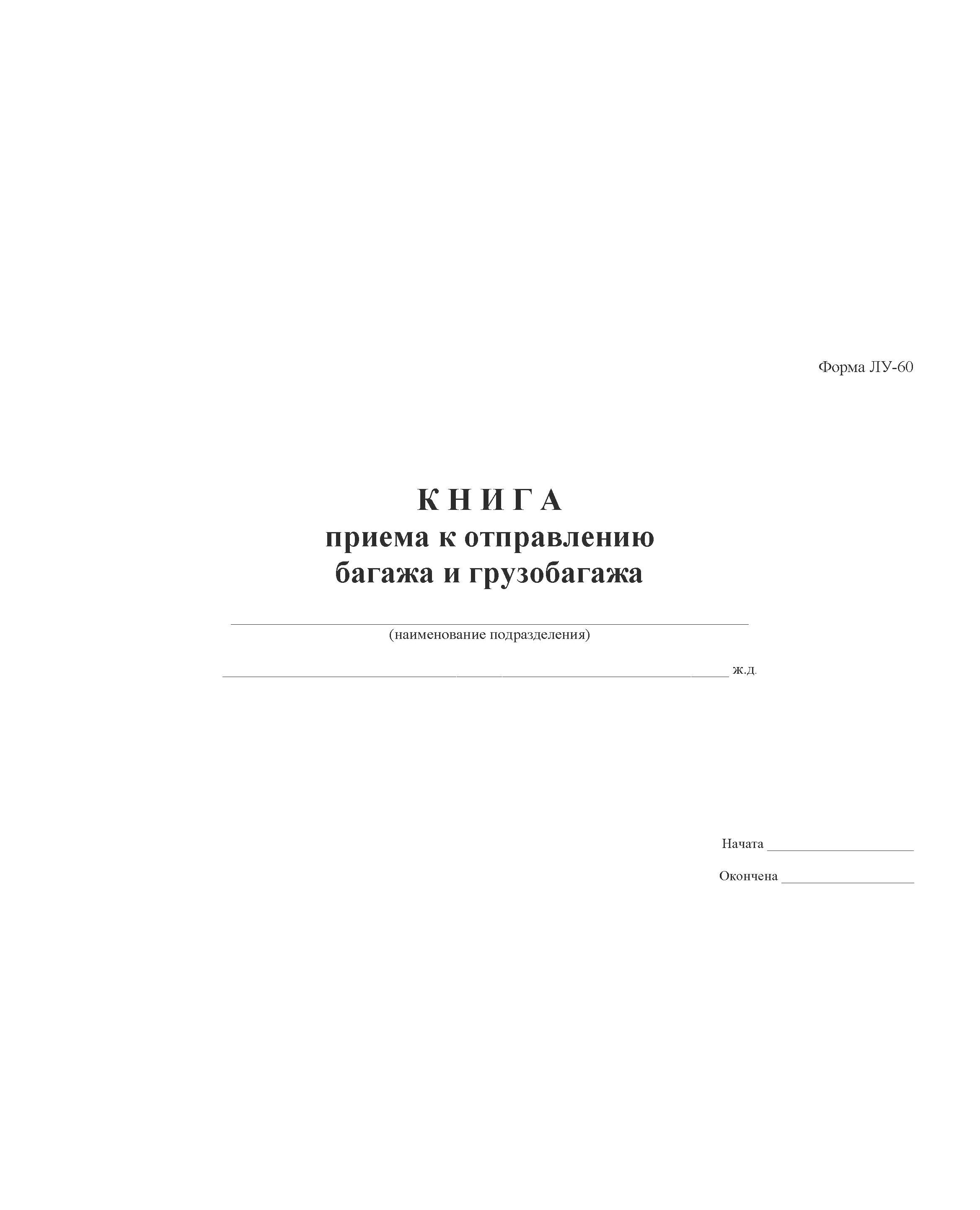 Форма ЛУ-60. Книга приема к отправлению багажа и грузобагажа. Утв. Распоряжением ОАО "РЖД" от 30.12.2008 № 2890р. (прошитый, 100 страниц)
