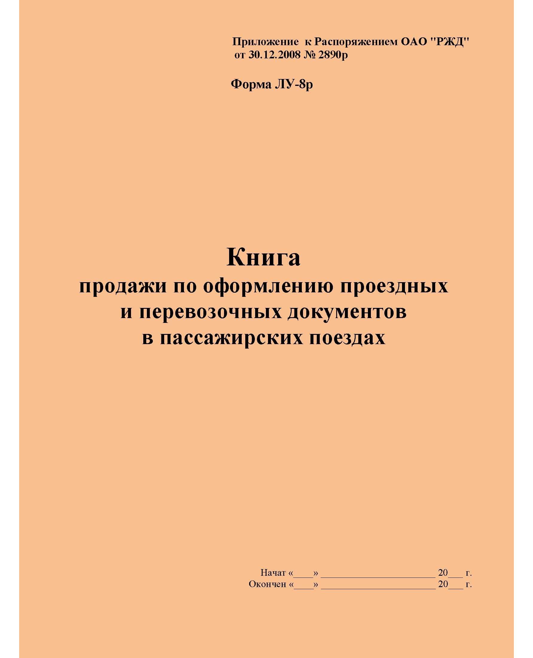 Форма ЛУ-8р. Книга продажи по оформлению проездных и перевозочных документов в пассажирских поездах. Утв. Распоряжением ОАО "РЖД" от 30.12.2008 № 2890р. (прошитый, 100 страниц)