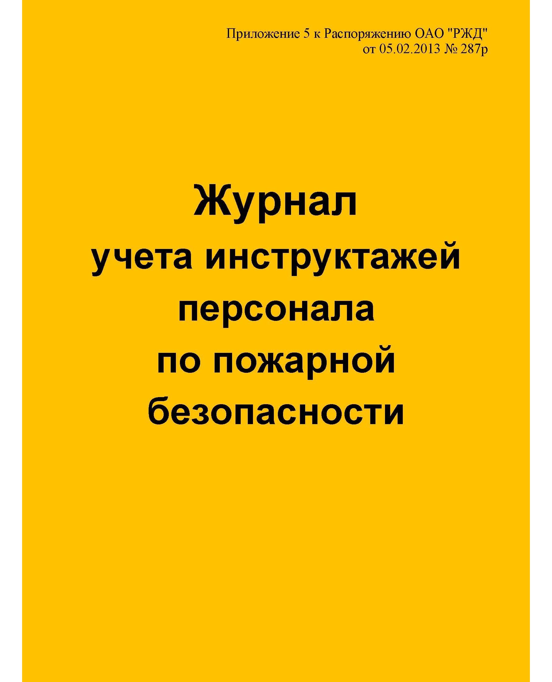 Журнал учета инструктажей персонала по пожарной безопасности (Приложение 5 к Распоряжению ОАО "РЖД" от 05.02.2013 № 287р) (прошитый, 100 страниц)