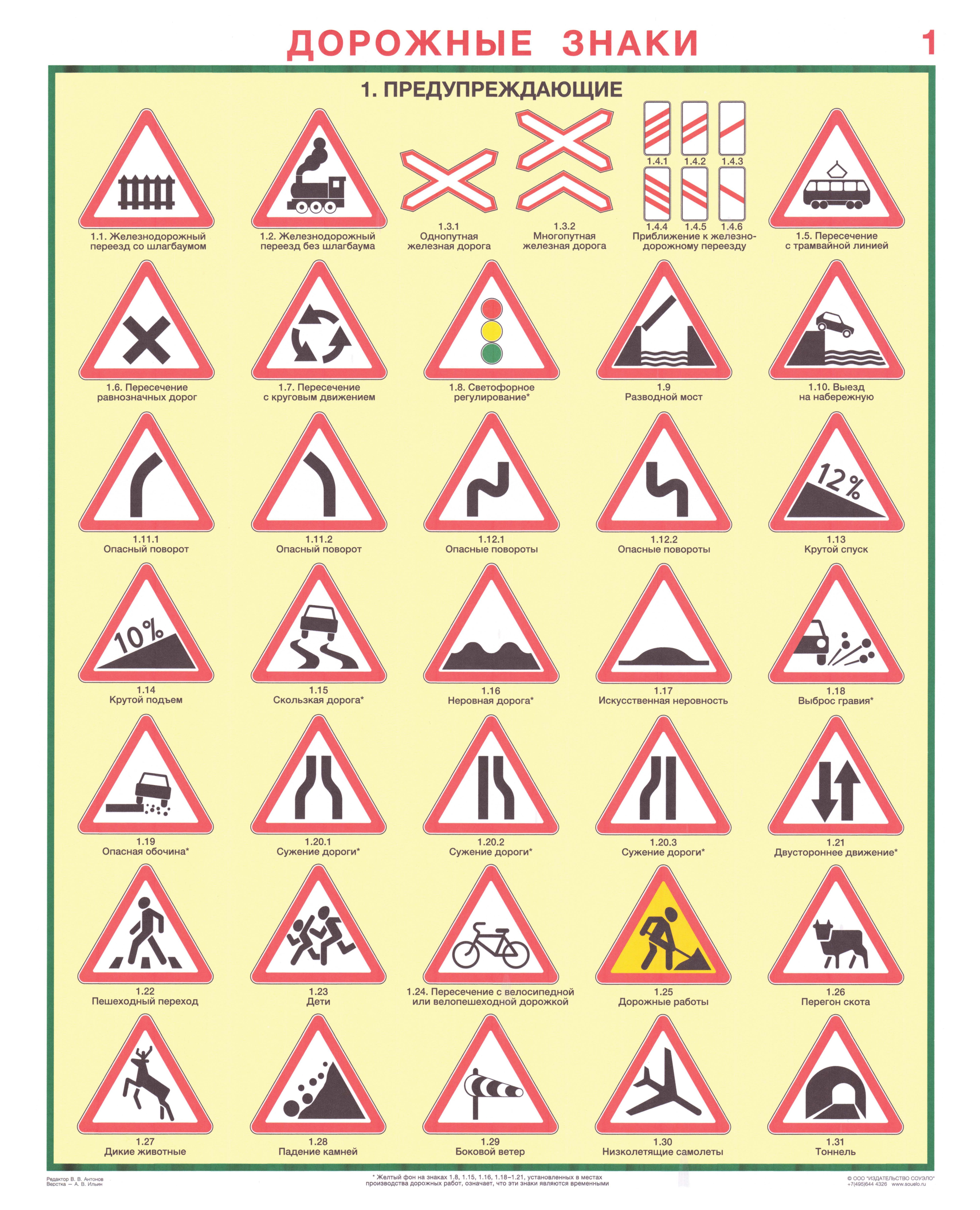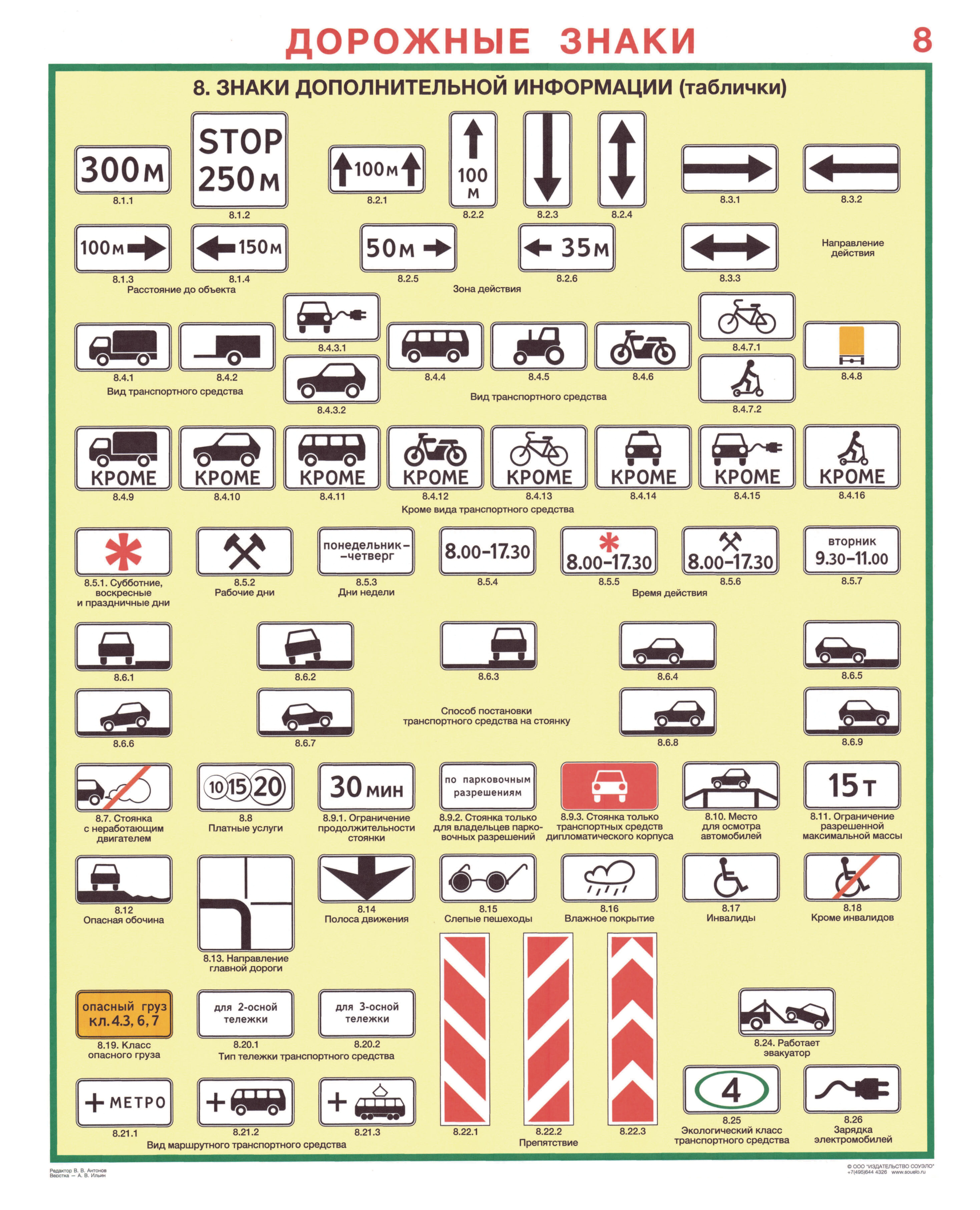 Комплект плакатов: Дорожные знаки, 8 листов, формат А2, ламинированные