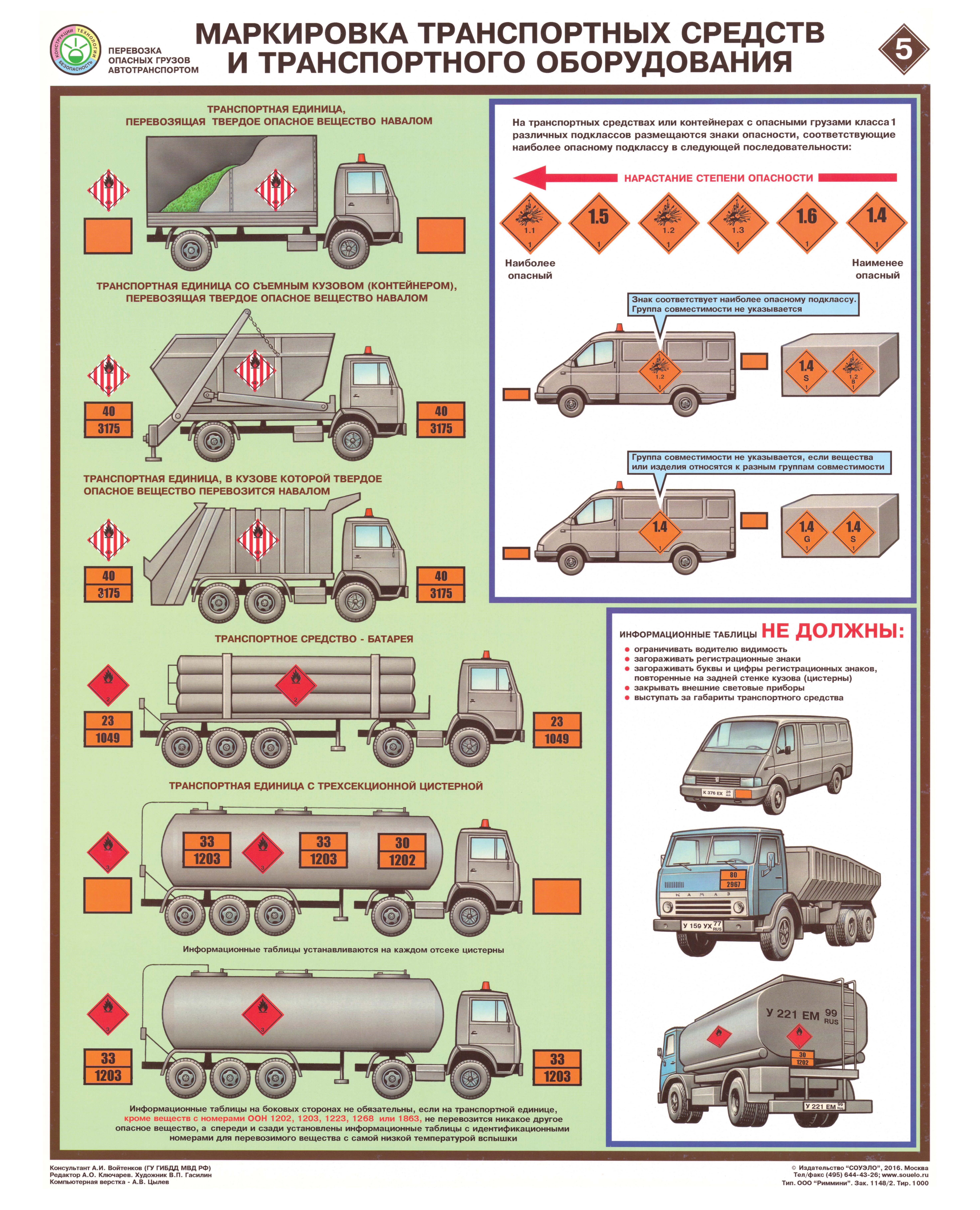 Комплект плакатов: Перевозка опасных грузов автотранспортом, 5 листов, формат А2, ламинированные