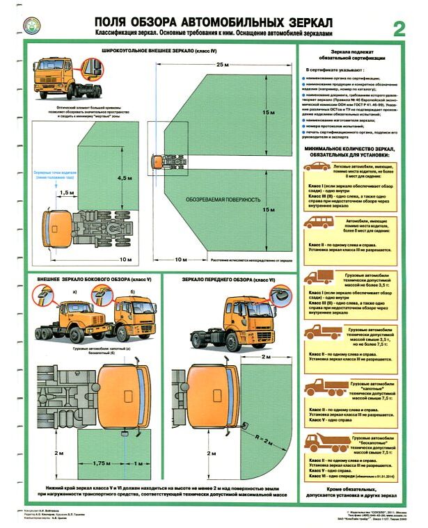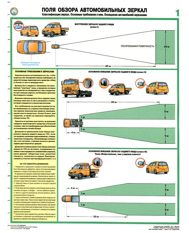 Комплект плакатов: Поля обзора автомобильных зеркал, 2 штуки, формат А2, ламинированные