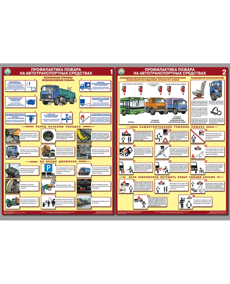 Комплект плакатов: Профилактика пожара на автотранспортных средствах. 2 листа, ламинированный, формат А2.