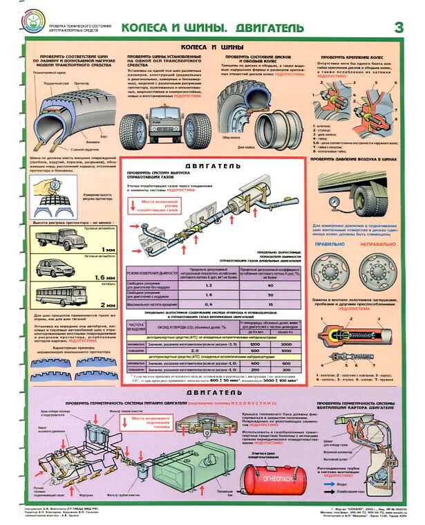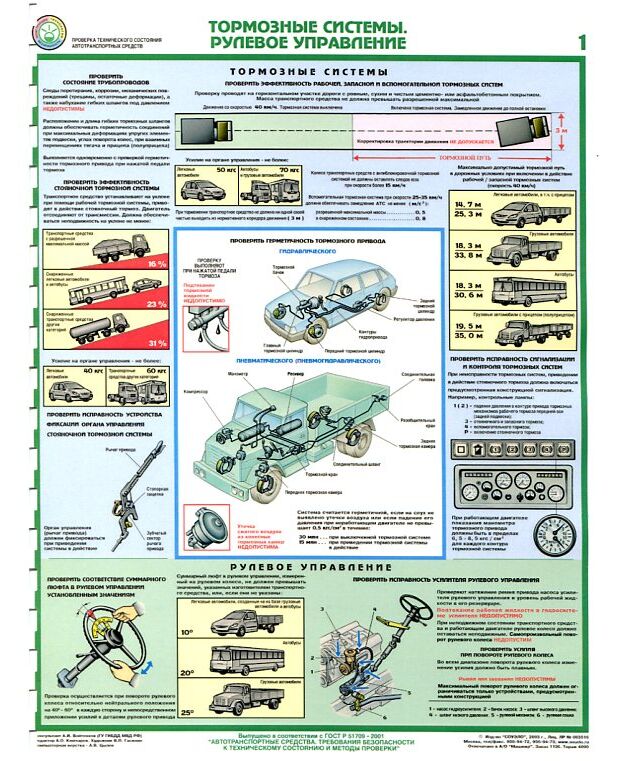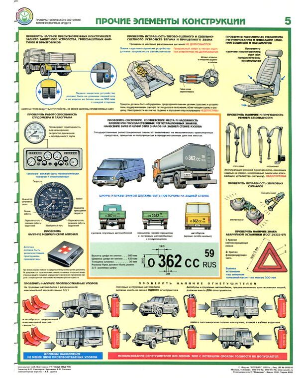Комплект плакатов: Проверка технического состояния автотранспортных средств 5 листов. формат А2, ламинированные.