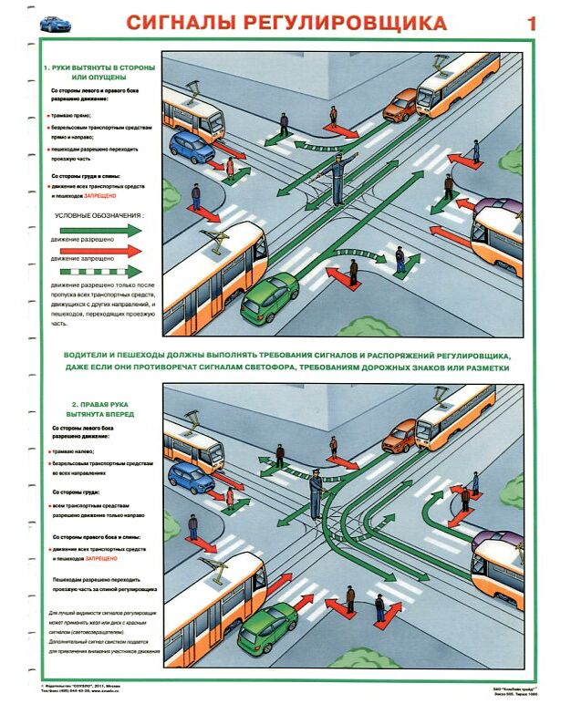 Комплект плакатов: Сигналы регулировщика, 2 листа, ламинированный, формат А2.