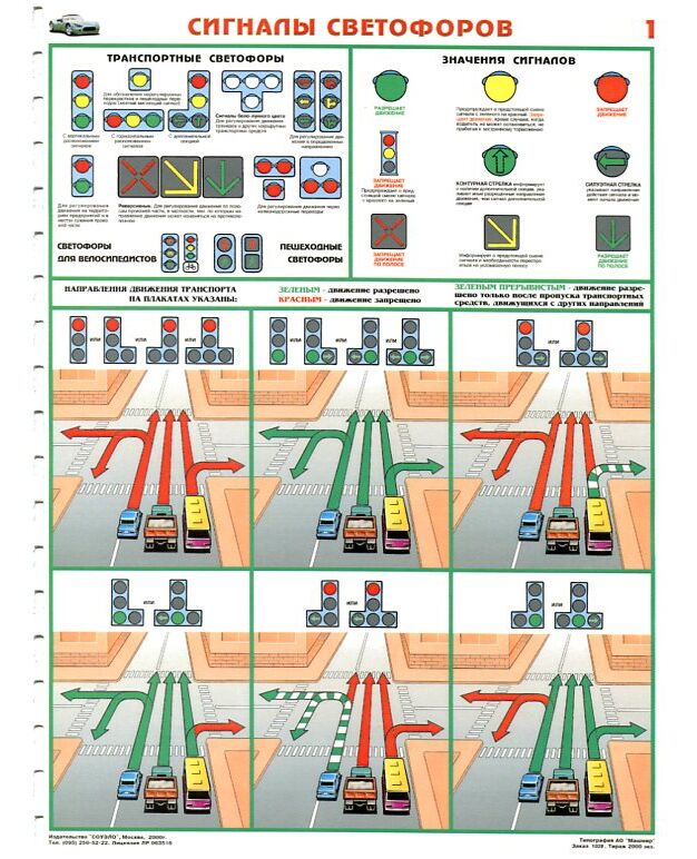 Комплект плакатов: Сигналы светофоров, 2 листа, ламинированный, формат А2.