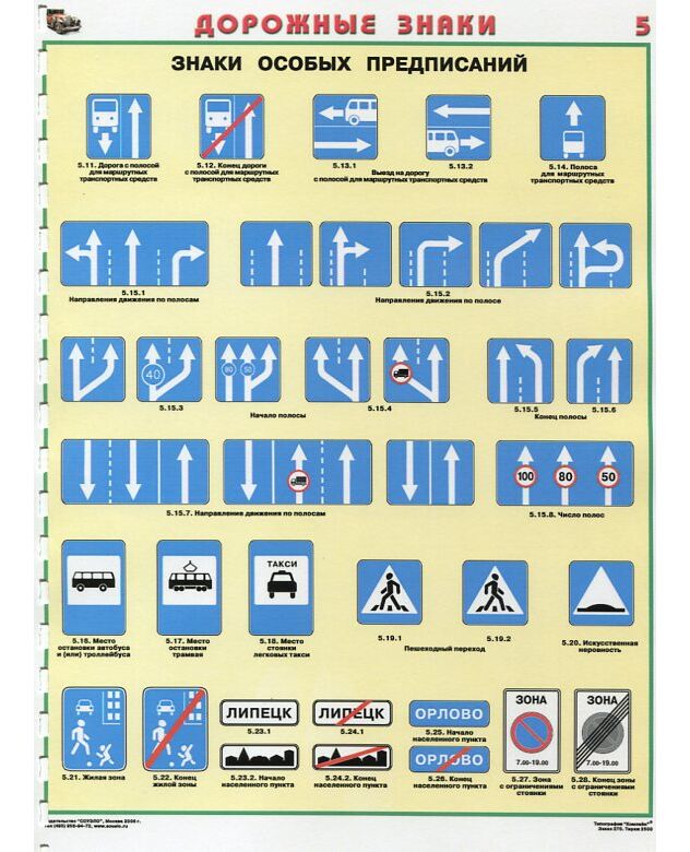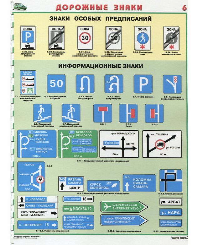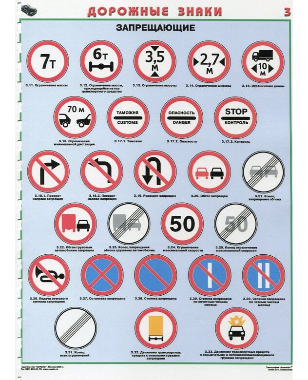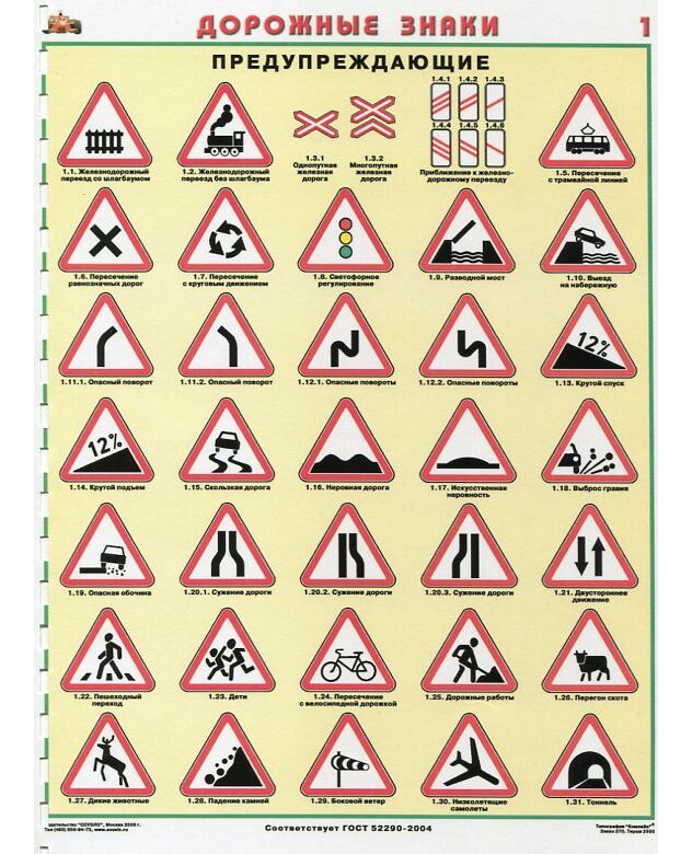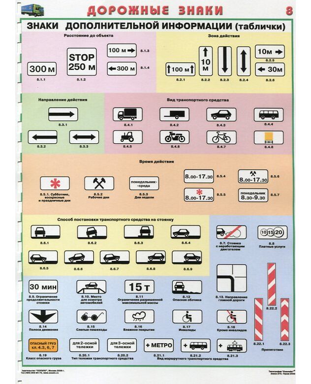 Комплект плакатов: Знаки дорожного движения, 8 листов, формат А2, ламинированные.
