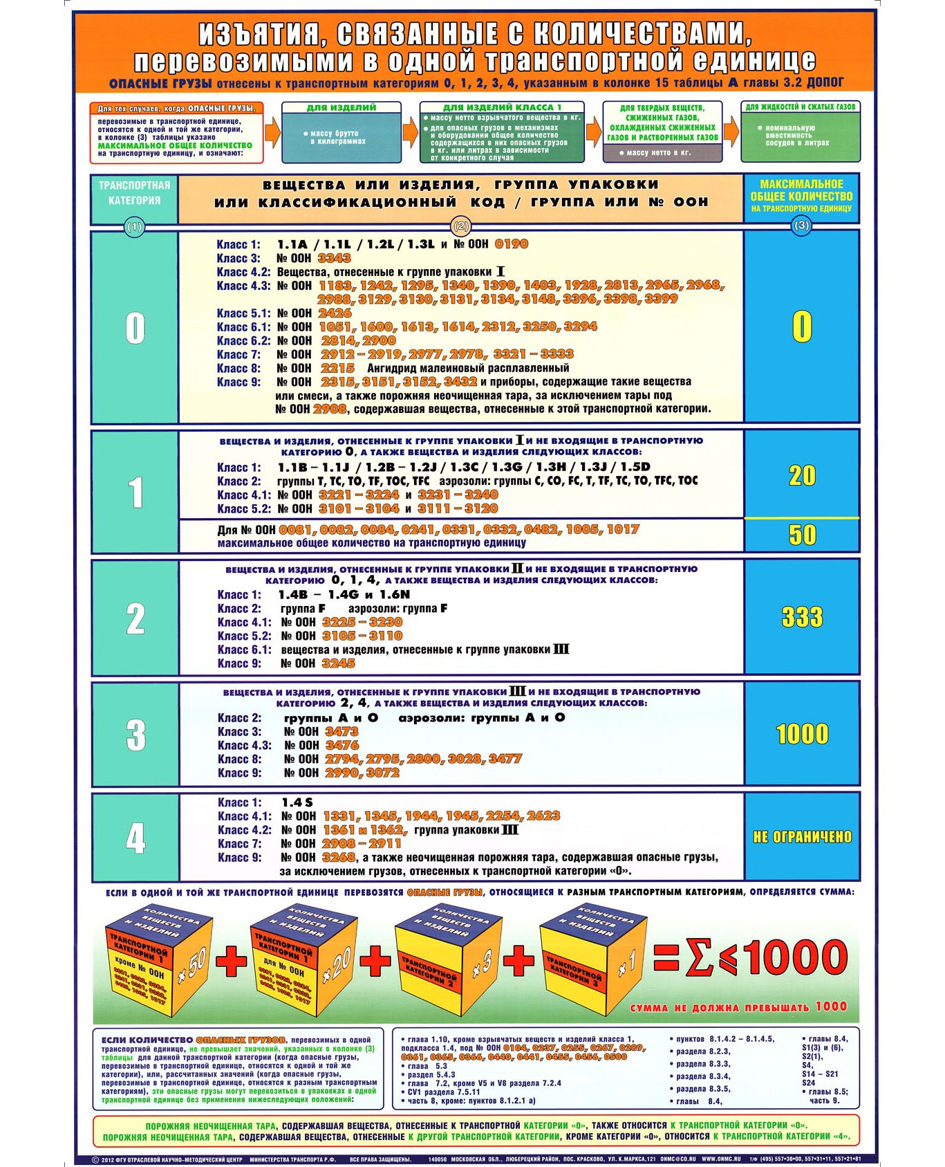 Плакат: Изъятия, связанные с количествами, перевозимыми в одной транспортной единице (А1, ламинированный)