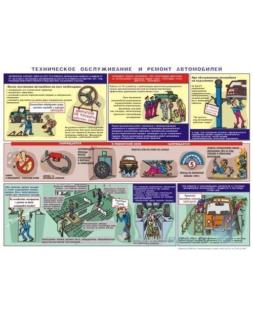 Плакат: Техническое обслуживание и ремонт автомобилей, 1 штука, формат А2, ламинированный
