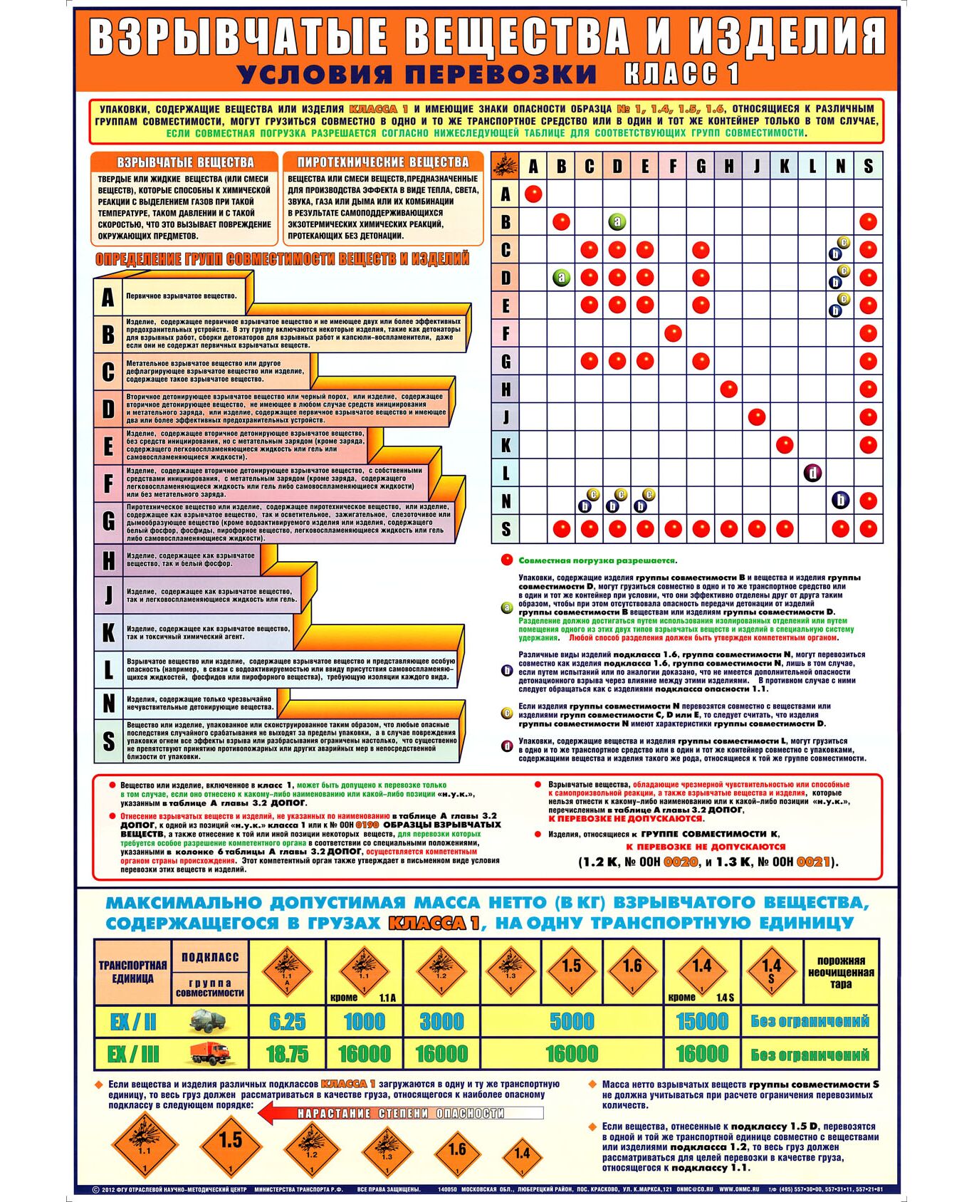 Плакат: Взрывчатые вещества и изделия Условия перевозки класса 1 (А1, ламинированный)