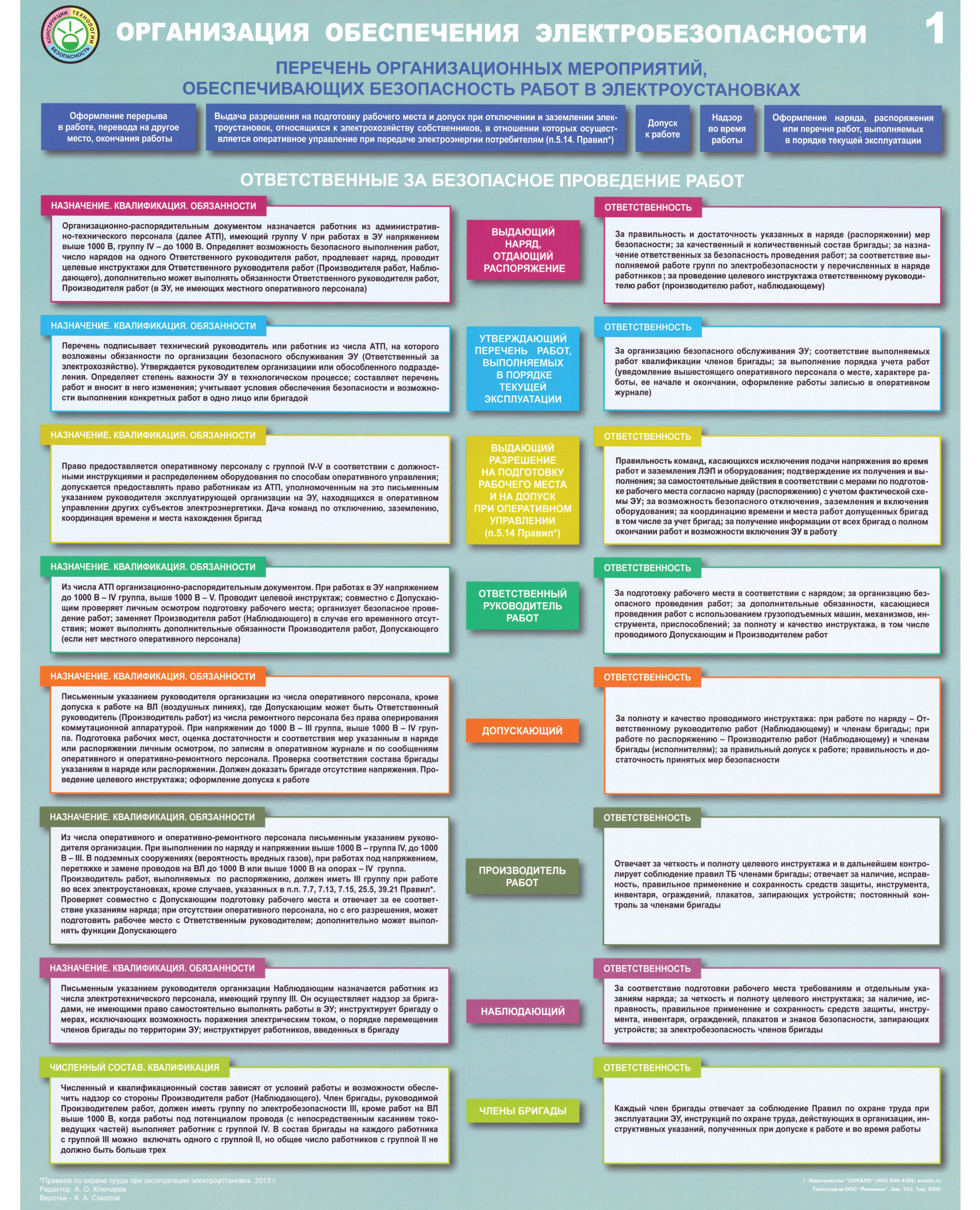 Комплект плакатов: Организация обеспечения электробезопасности, 3 листа, формат А2, ламинированные