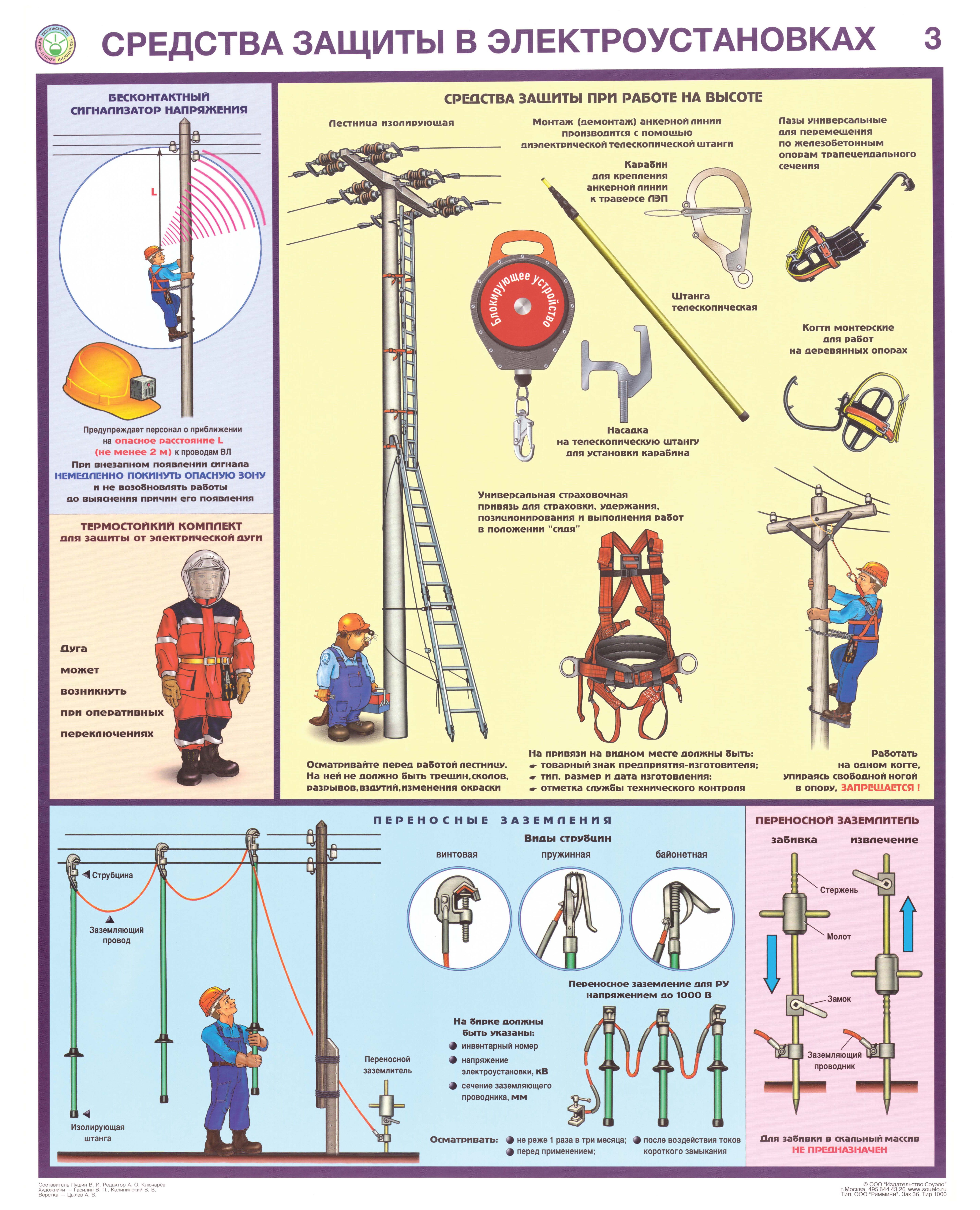Комплект плакатов: Средства защиты в электроустановках, 3 листа, формат А2, ламинированные