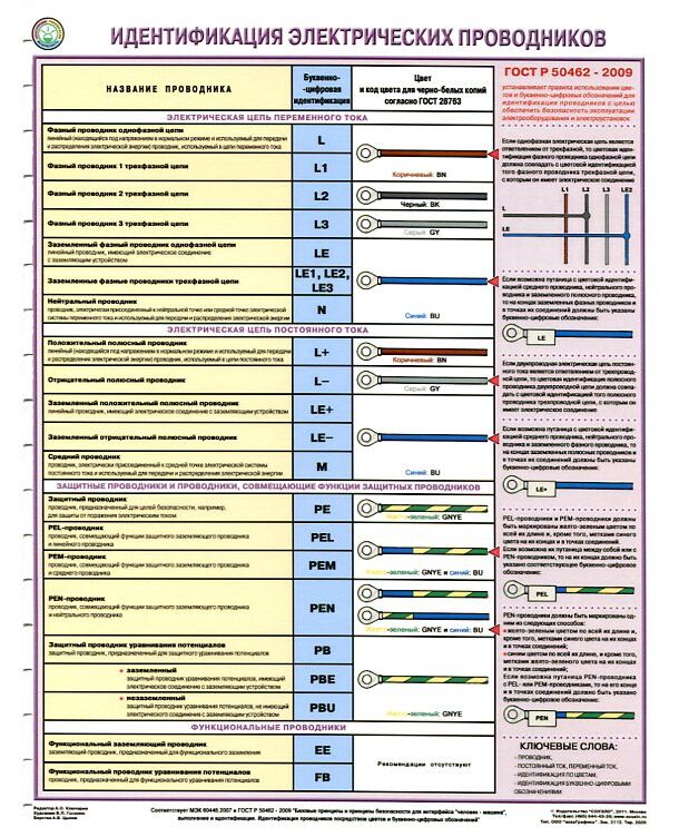 Плакат: Идентификация электрических проводников. 1 лист, ламинированный, формат А2