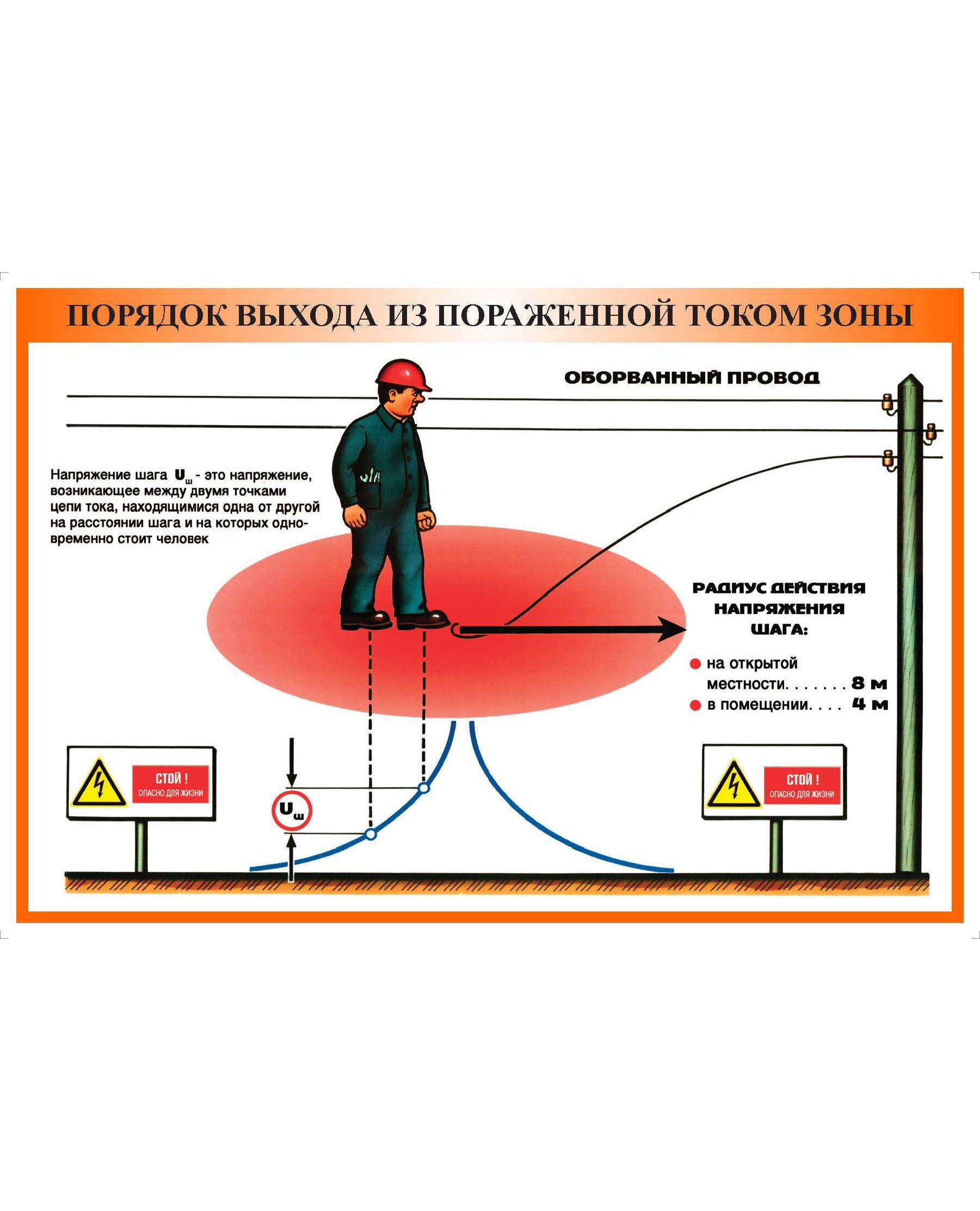 Плакат: Порядок выхода из пораженной током зоны (формат А2, ламинированный)