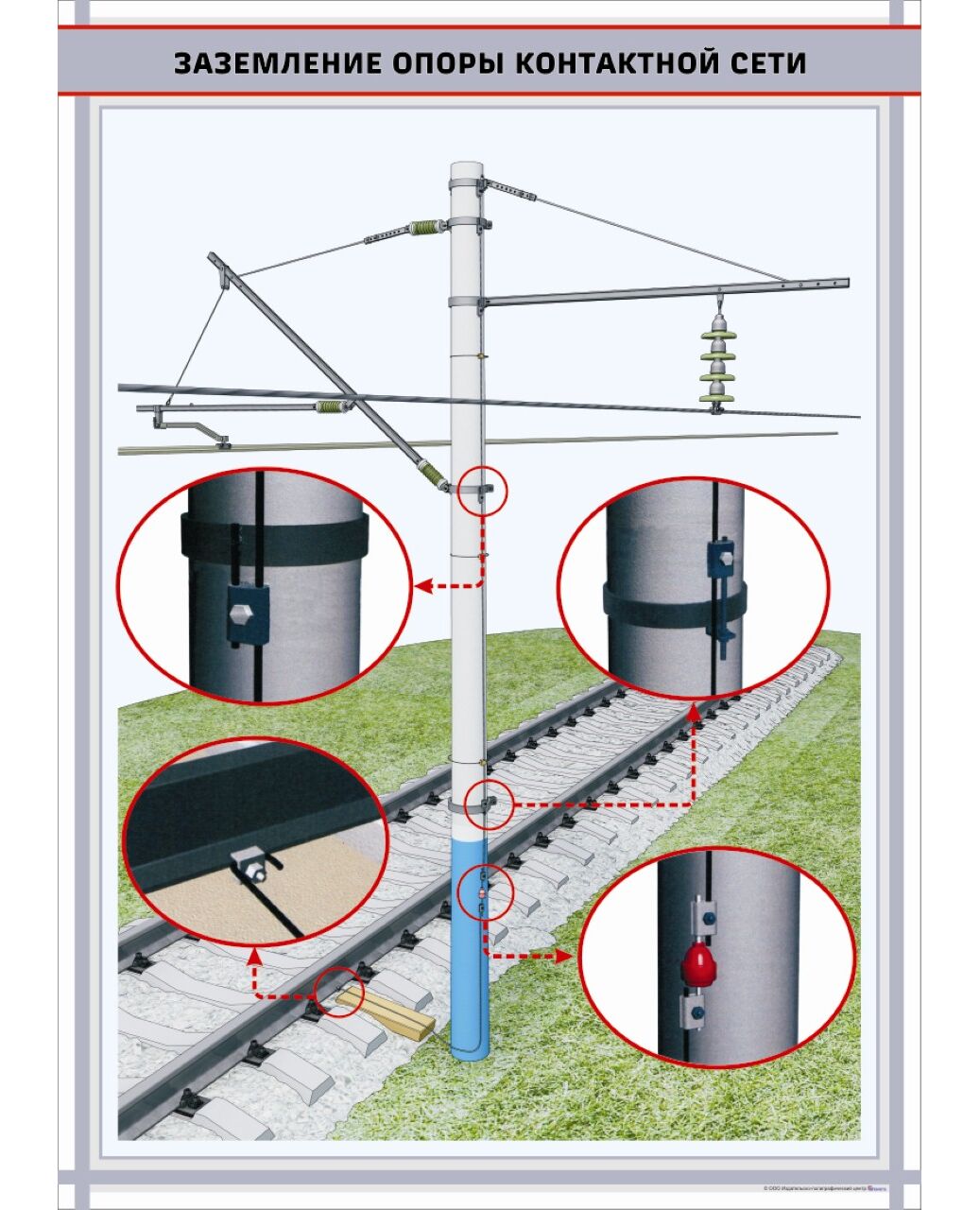 Заземление опоры контактной сети. формат А1 (600 х 900 мм, ламинированный, с пластиковым профилем и стальным крючком)