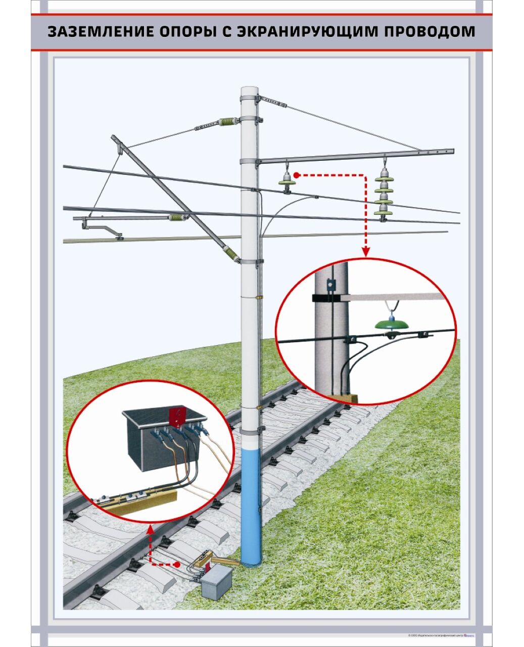 Заземление опоры с экранирующим проводом, формат А1 (600 х 900 мм, ламинированный, с пластиковым профилем и стальным крючком)