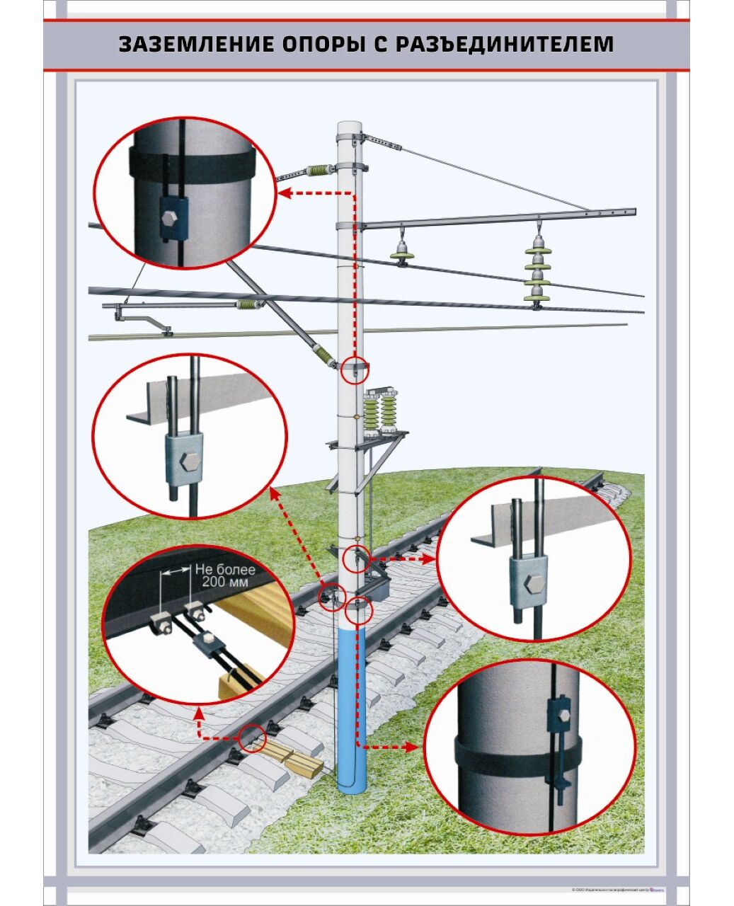 Заземление опоры с разъединителем. формат А1 (600 х 900 мм, ламинированный, с пластиковым профилем и стальным крючком)