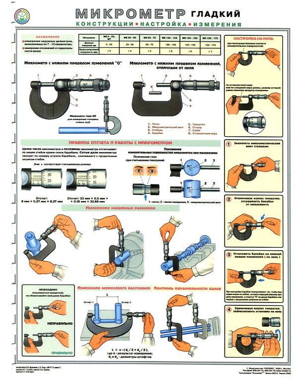 Плакат: Микрометр (конструкция, настройки, измерения), 1 штука, формат А2, ламинированный