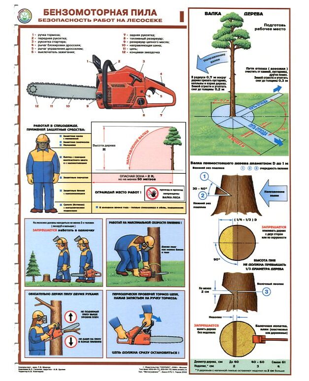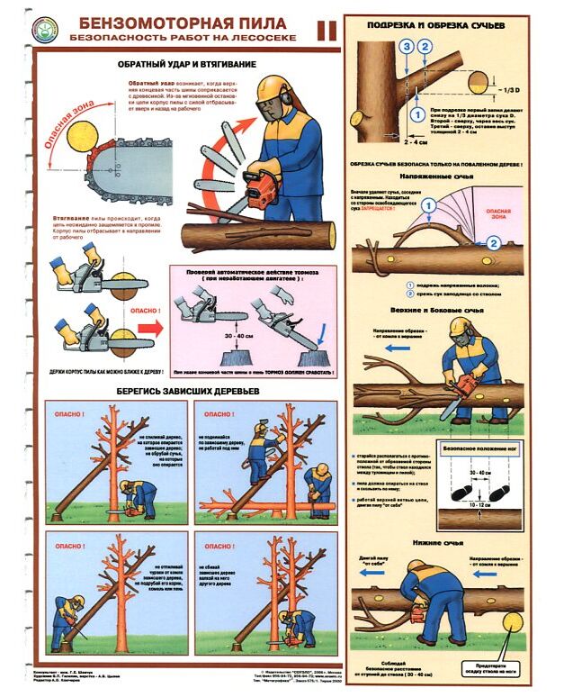 Комплект плакатов: Безмоторная пила.Безопасность работы на лесосеке, 3 листа, формат А2, ламинированные