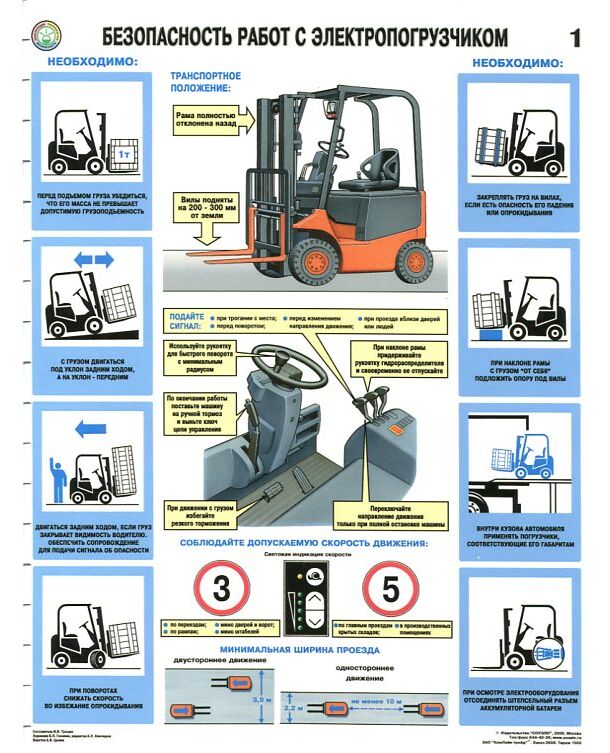 Комплект плакатов: Безопасность работ с электропогрузчиками, 2 листа, формат А2, ламинированные
