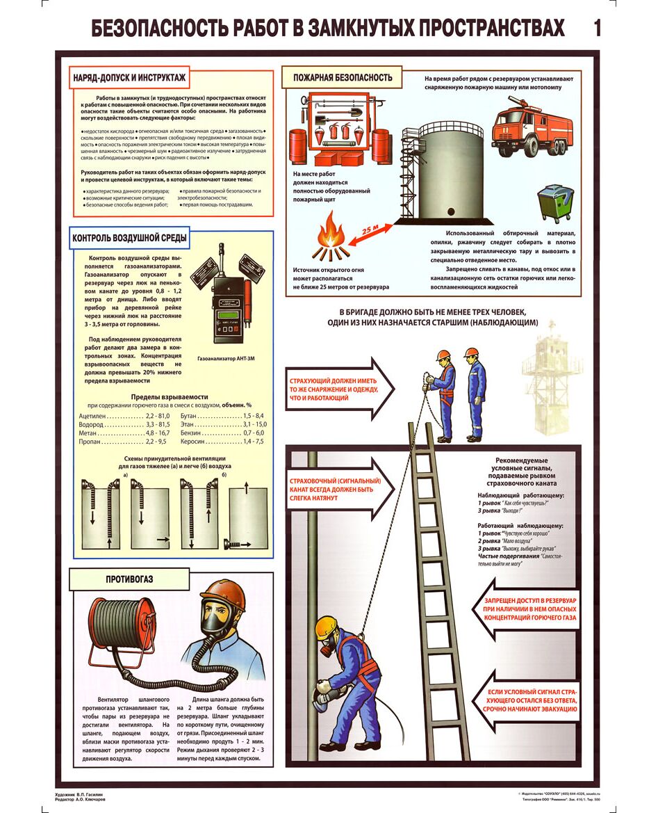Комплект плакатов: Безопасность работ в замкнутых пространствах.(формат А2, ламинированные, комплект из 2 листов)