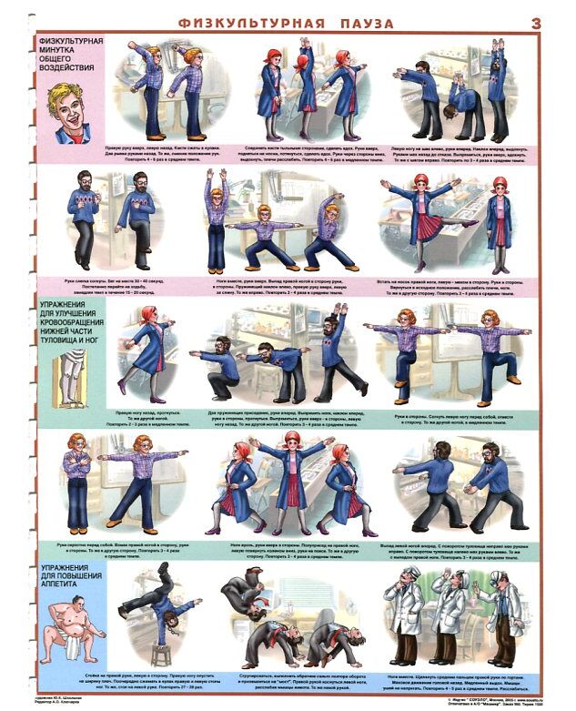 Комплект плакатов:Физическая пауза, 3 штуки. формат А2, ламинированные