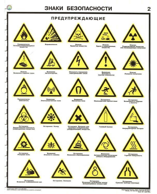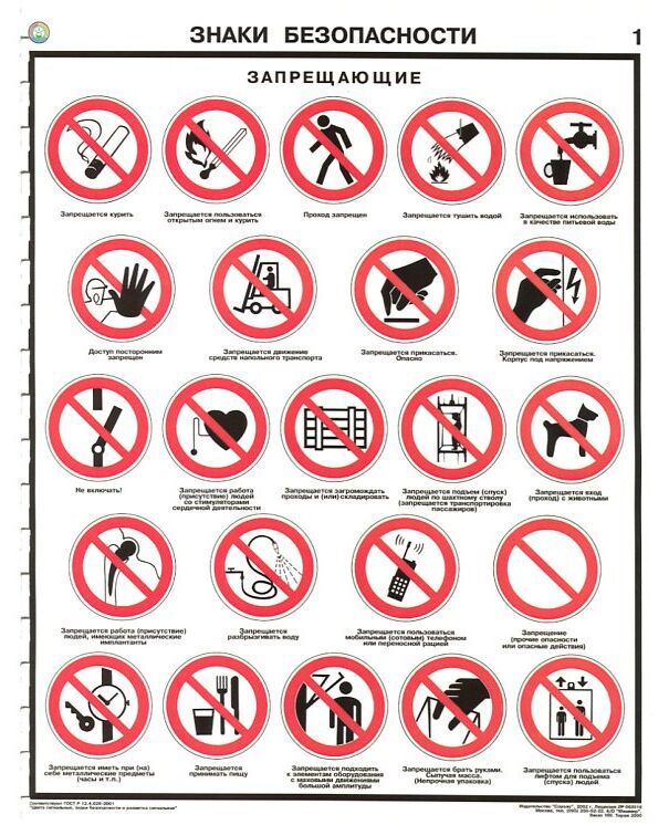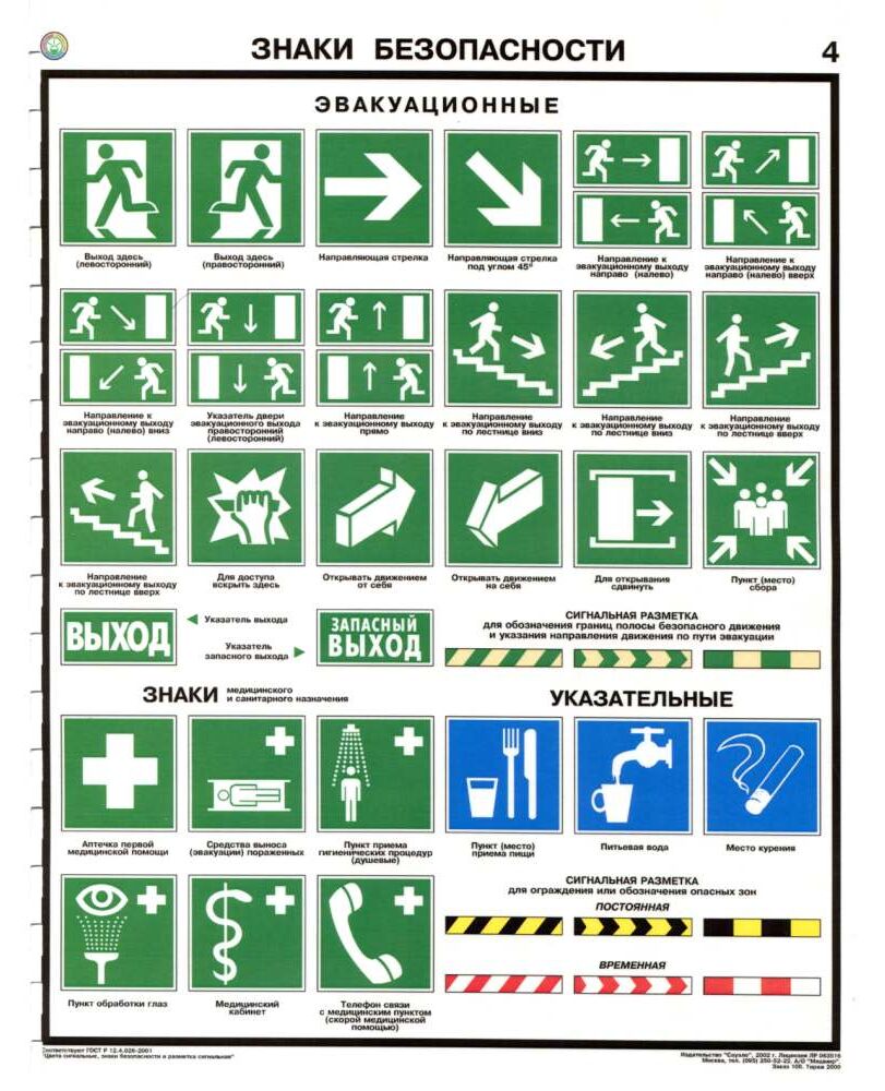 Комплект плакатов: Знаки безопасности по ГОСТ 12.4.026-01, 4 листа, формат А2, ламинированные