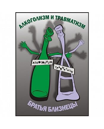 Плакат: Алкоголизм и травматизм - братья близнецы , 1 штука, формат А3, размер 297 x 420, ламинированный