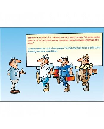 Плакат: Безопасность не должна быть принесена в жертву производству работ , 1 штука, формат А2, размер 420 x 594, ламинированный