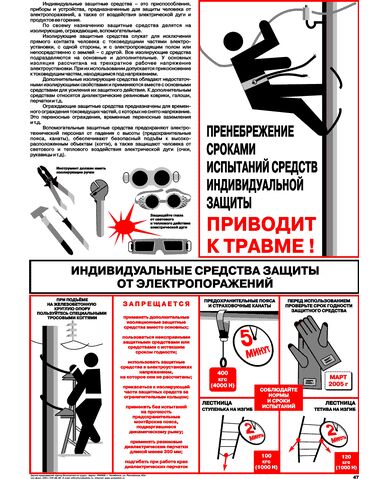 Плакат: Индивидуальные средства защиты от электропоражений, 1 штука, формат А2, ламинированный