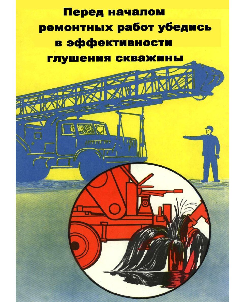 Плакат: Перед началом ремонтных работ убедись в эффективности глушения скважины, 1 штука, формат А3, ламинированный