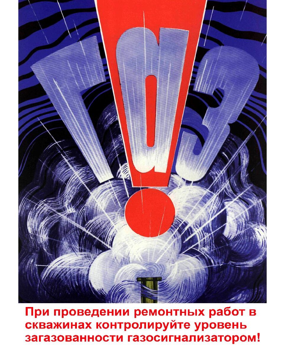 Плакат: При проведении ремонтных работ в скважинах контролируйте уровень загазованности газосигнализатором, 1 штука, формат А3, ламинированный