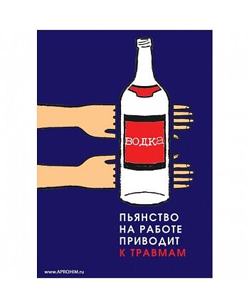 Плакат: Пьянство на работе - источник травм! , 1 штука, формат А3, размер 297 x 420, ламинированный