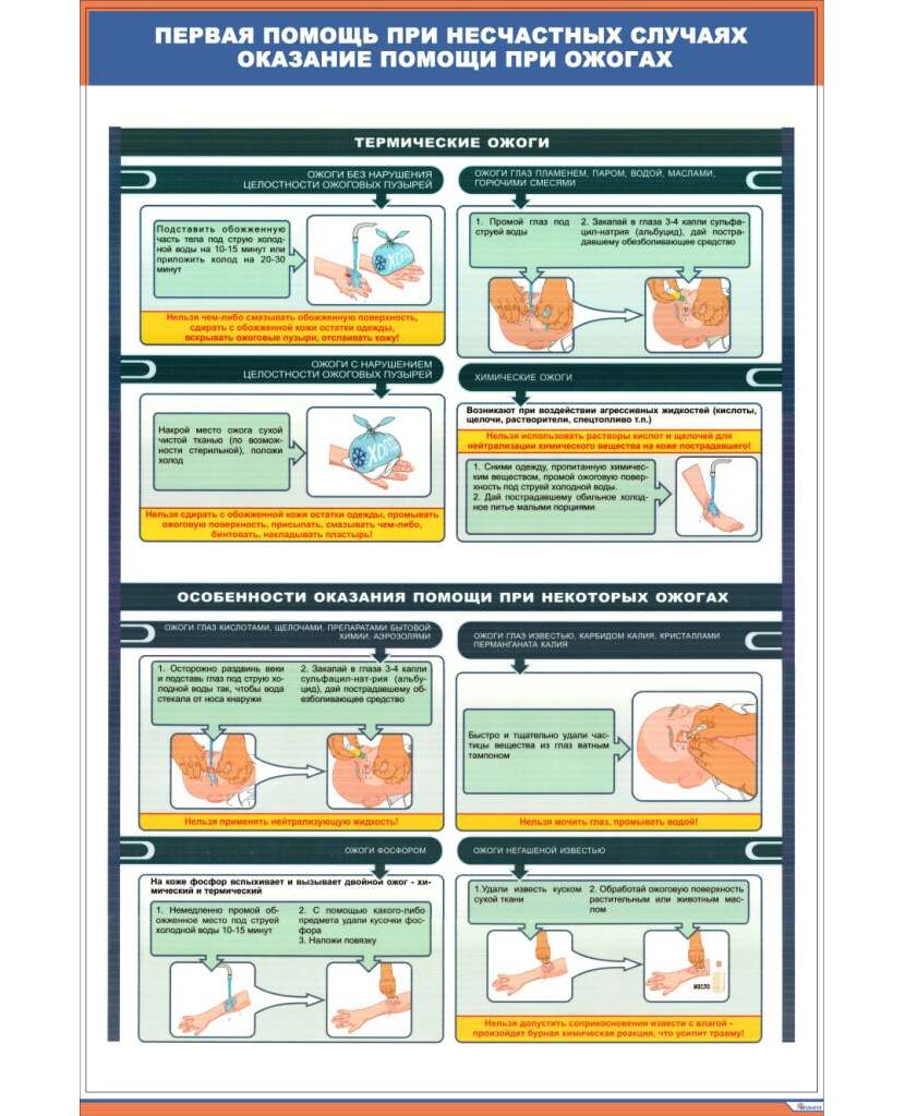 Плакат: Первая помощь при несчастных случаях. Оказание помощи при ожогах (600 х 900 мм, ламинированый, с пластиковым профилем и стальным крючком)