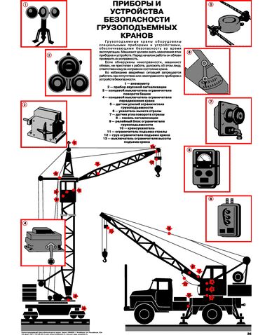 Плакат: Приборы и устройства безопасности грузоподъемных кранов, 1 штука, формат А2, ламинированный
