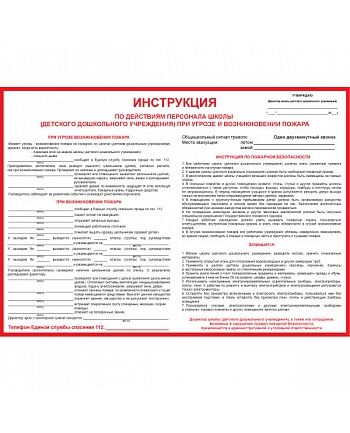 Плакат: Инструкция по действиям персонала школы (детского дошкольного учреждения) при угрозе и возникнове , 1 штука, , размер 500 x 700, самоклеющийся
