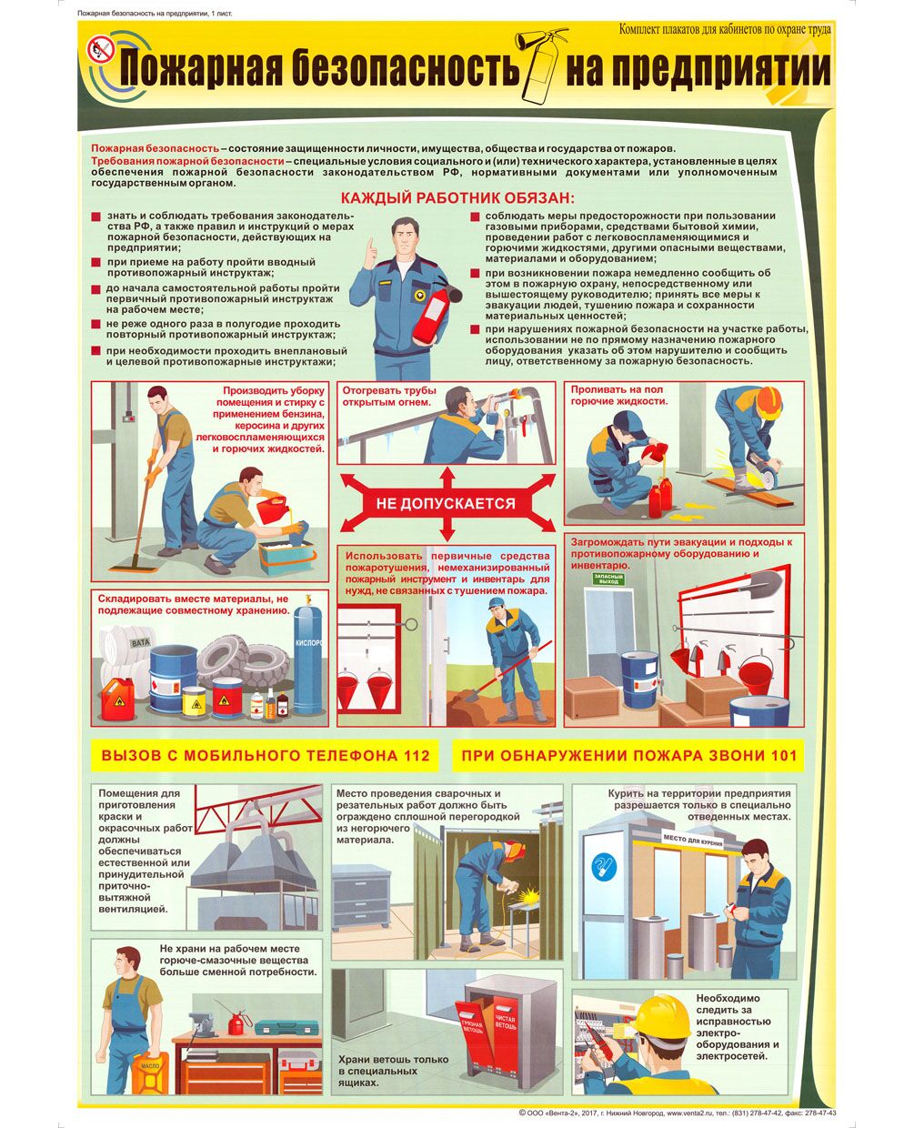 Плакат: Пожарная безопасность на предприятии, 1 штука, формат А2, ламинированный