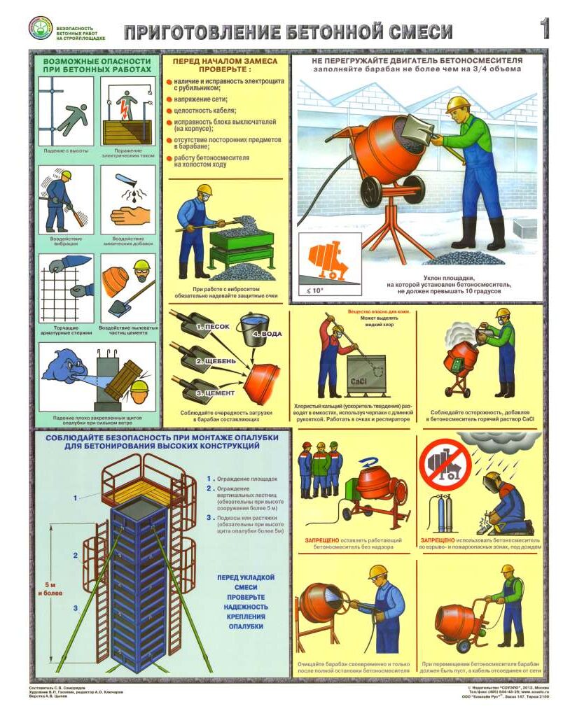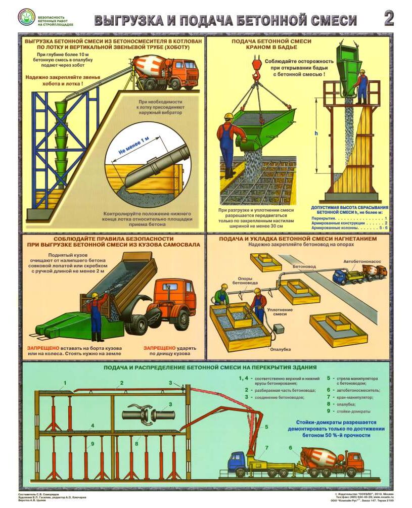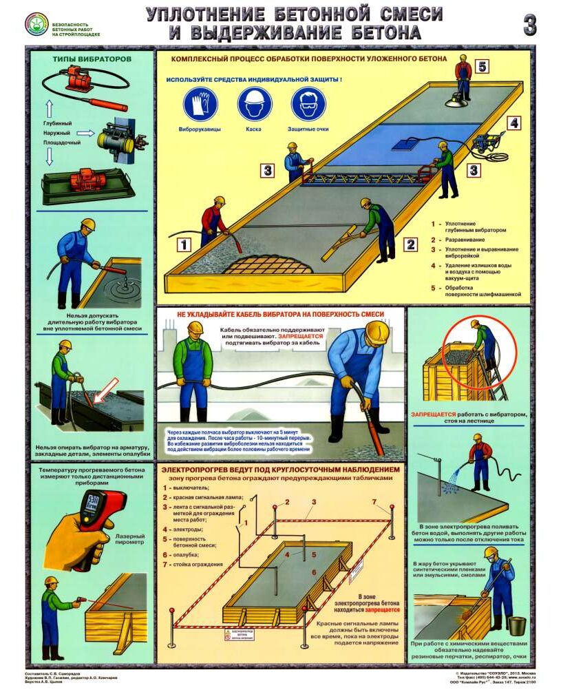 Комплект плакатов: Безопасность бетонных работ на стройплощадке, 3 листа, формат А2, ламинированные