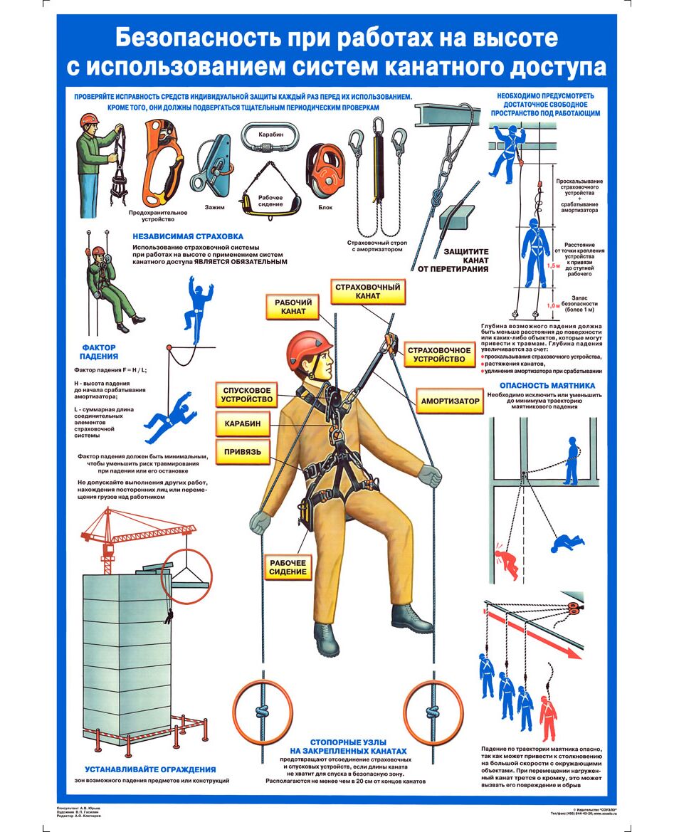 Плакат «Безопасность работ на высоте с использованием систем канатного доступа», 1 штука, формат А2, ламинированный