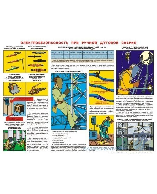 Плакат: Электробезопасность при ручной дуговой сварке. 1 штука, формат А2, ламинированный