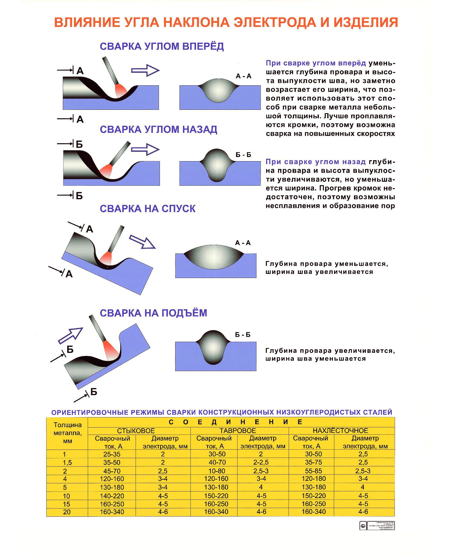Плакат: Влияние угла наклона электрода и изделия (250 г/м2, А1, ламинированный)