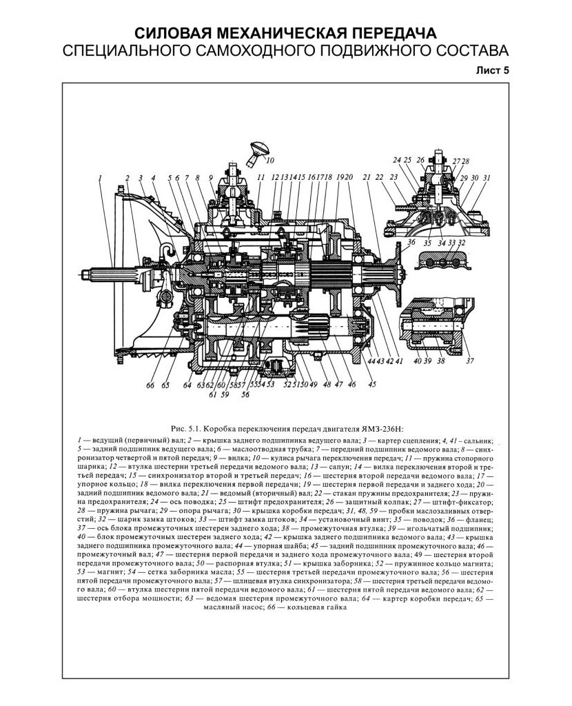 Плакат: Коробка переключения передач двигателя ЯМЗ-236Н , лист 5, формат А3, ламинированный