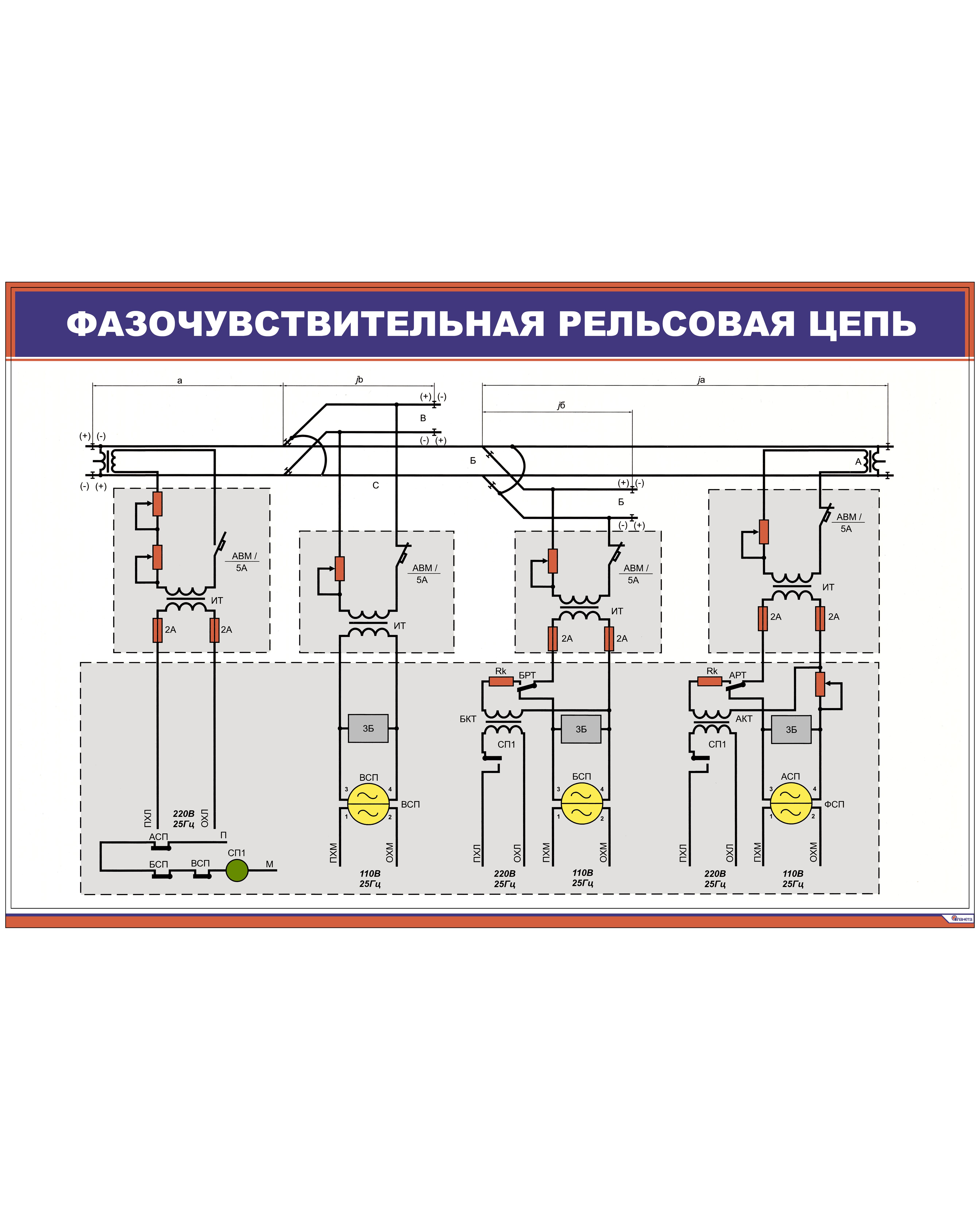 Фазочувствительная рельсовая цепь (900 х 600 мм, ламинированный, с пластиковым профилем и стальным крючком)