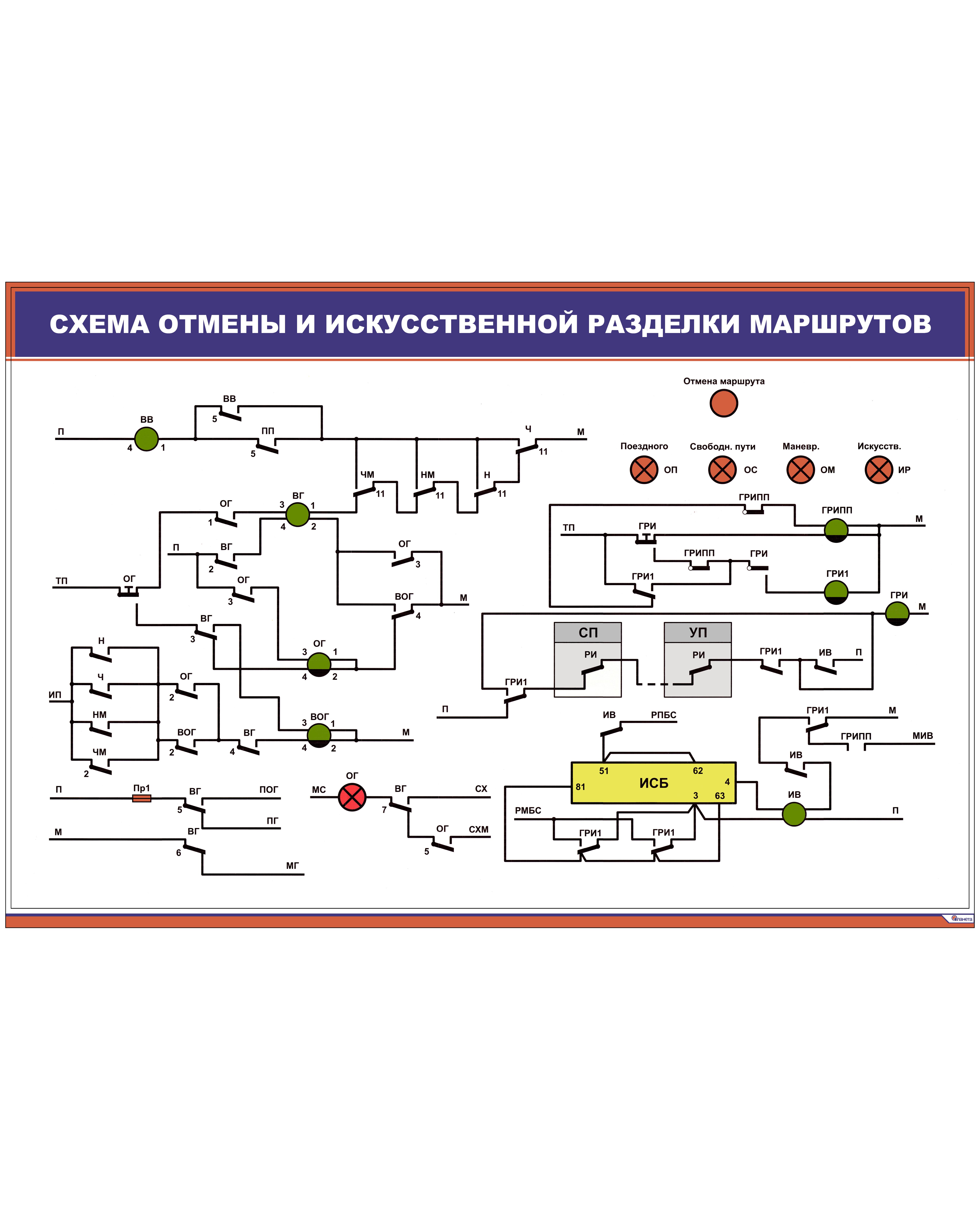 Схема отмены и искусственной разделки маршрутов (900 х 600 мм, ламинированный, с пластиковым профилем и стальным крючком)