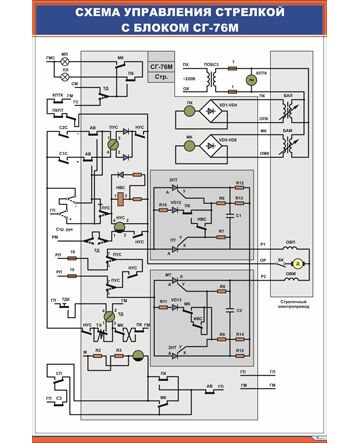 Схема управления стрелкой с блоком СГ-76М (600 х 900 мм, ламинированный, с пластиковым профилем и стальным крючком)