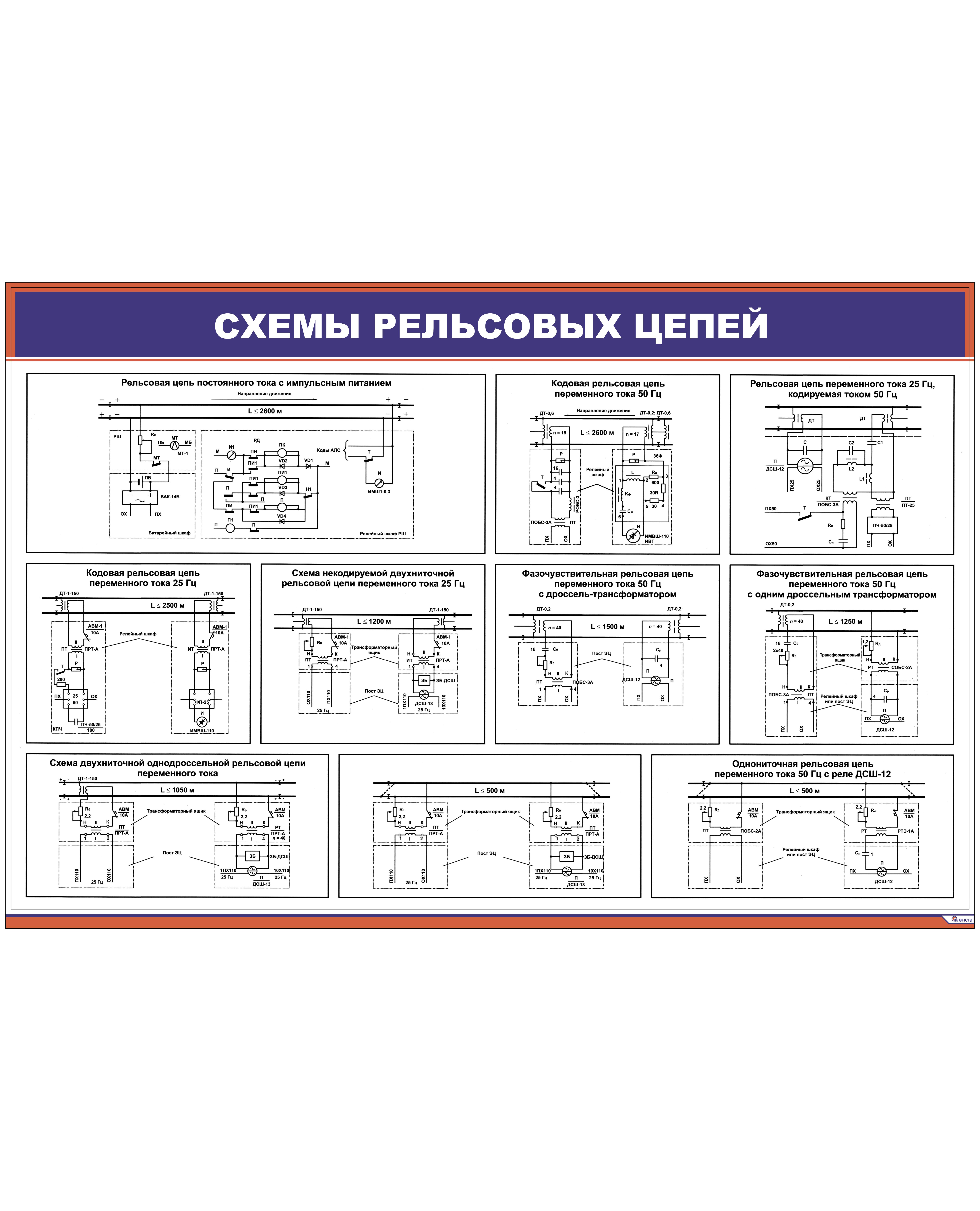 Схемы рельсовых цепей (900 х 600 мм, ламинированный, с пластиковым профилем и стальным крючком)
