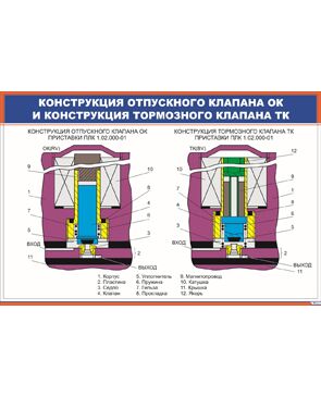 Конструкция отпускного клапана ОК и конструкция тормозного клапана ТК (900 х 600 мм, ламинированный, с пластиковым профилем и стальным крючком)