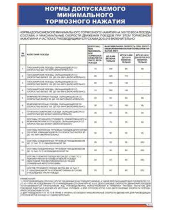 Нормы допускаемого минимального тормозного нажатия (600 х 900 мм, ламинированный, с пластиковым профилем и стальным крючком)